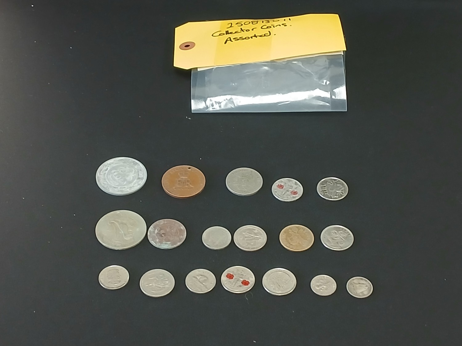 (18) coins and collectable tokens. Both sides of all currency, and tokens in pictures.