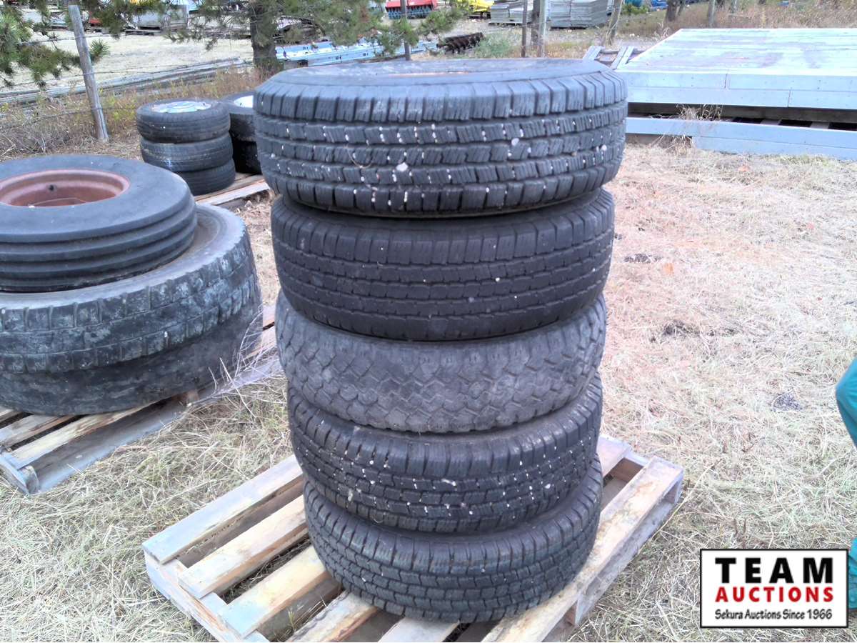 (5) 245/75R16 with rims, (3) misc tires, (3) quad tires (2) with rims, (3) 235/85R16 with rims, (2) misc tires with rims, (3) 265/R7017 tires,
