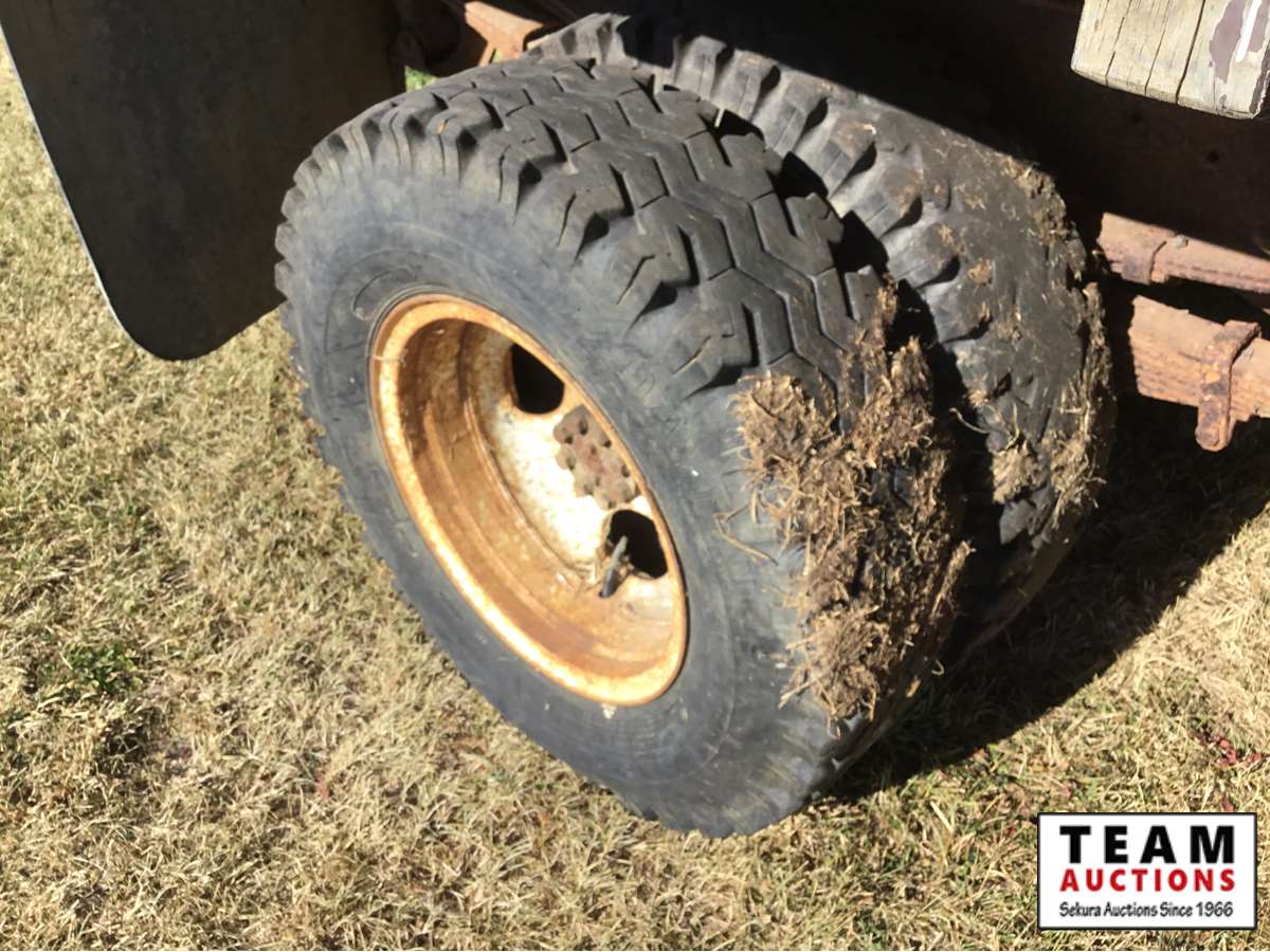 V8 gas engine, 4 speed transmission, wood box, hoist, Alberta registered (have copy of last registration on hand)