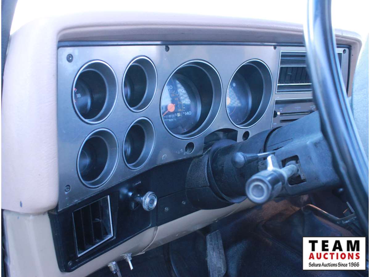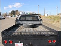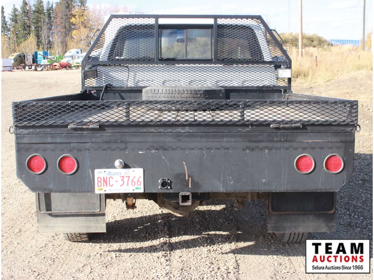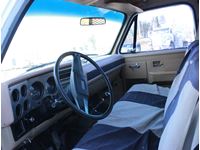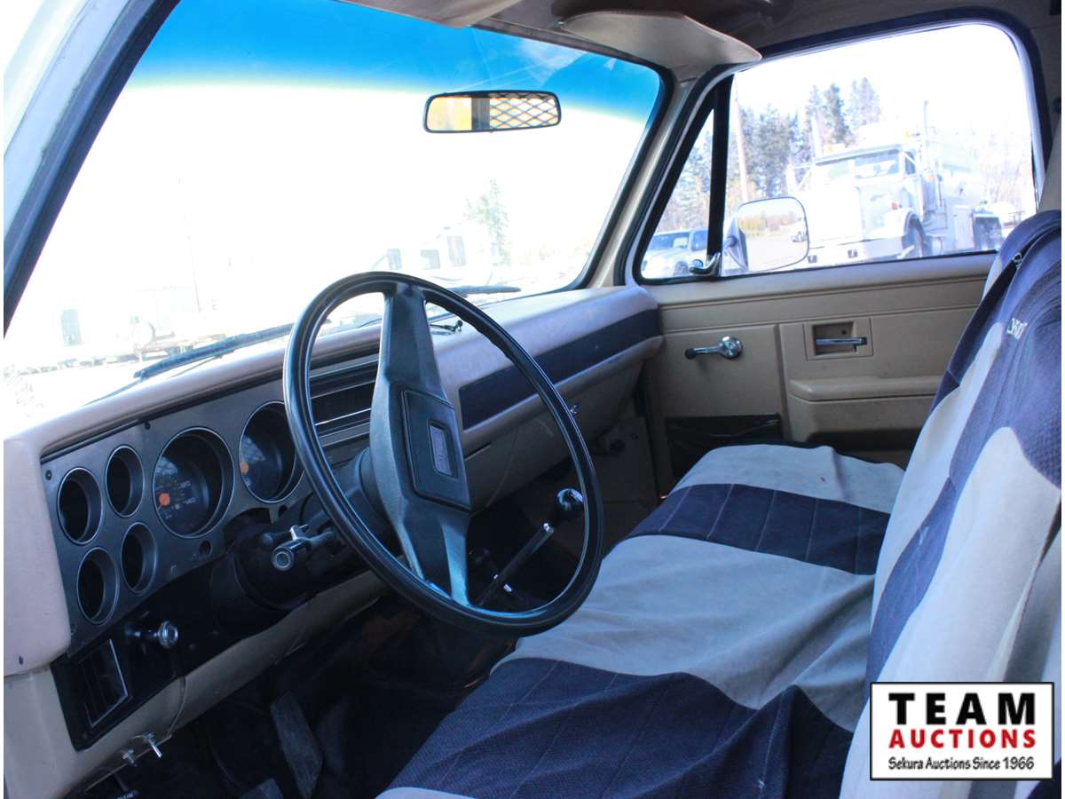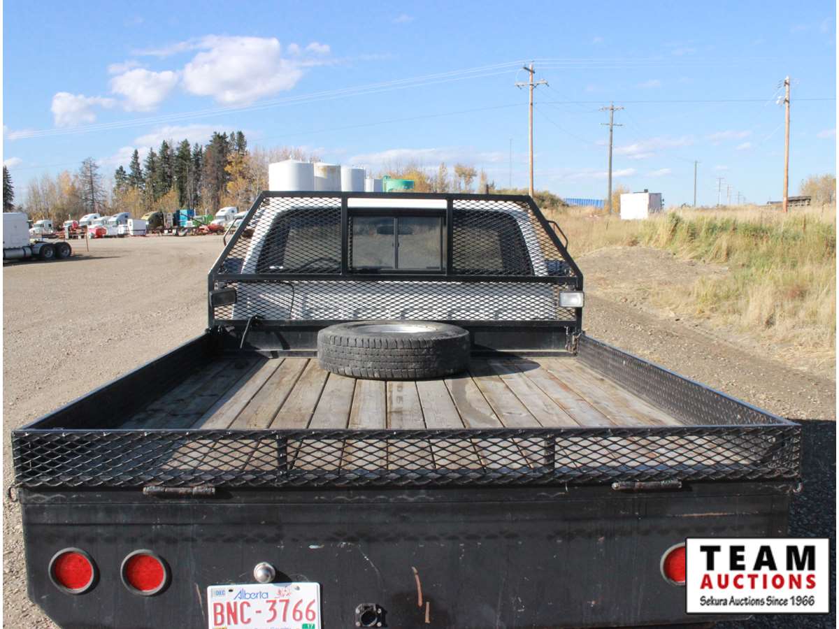 350 V8 engine, 4 speed standard transmission, runs only on propane, outside locking hubs, flat deck with folding sides, newer deck boards, rear air bags, shows 20,025 kms
