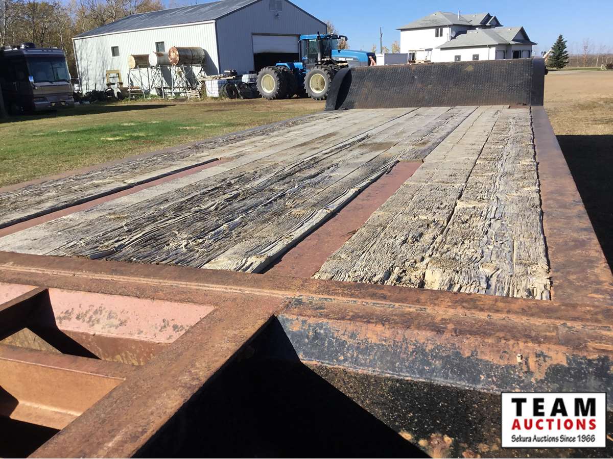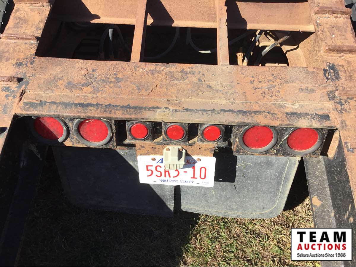 spring ride, beaver tails, side rub rails, wide load lights, 9' wide deck, real good floor, good paint, 11R22.5 rubber, Alberta registered
