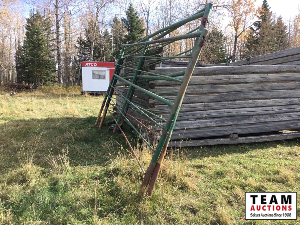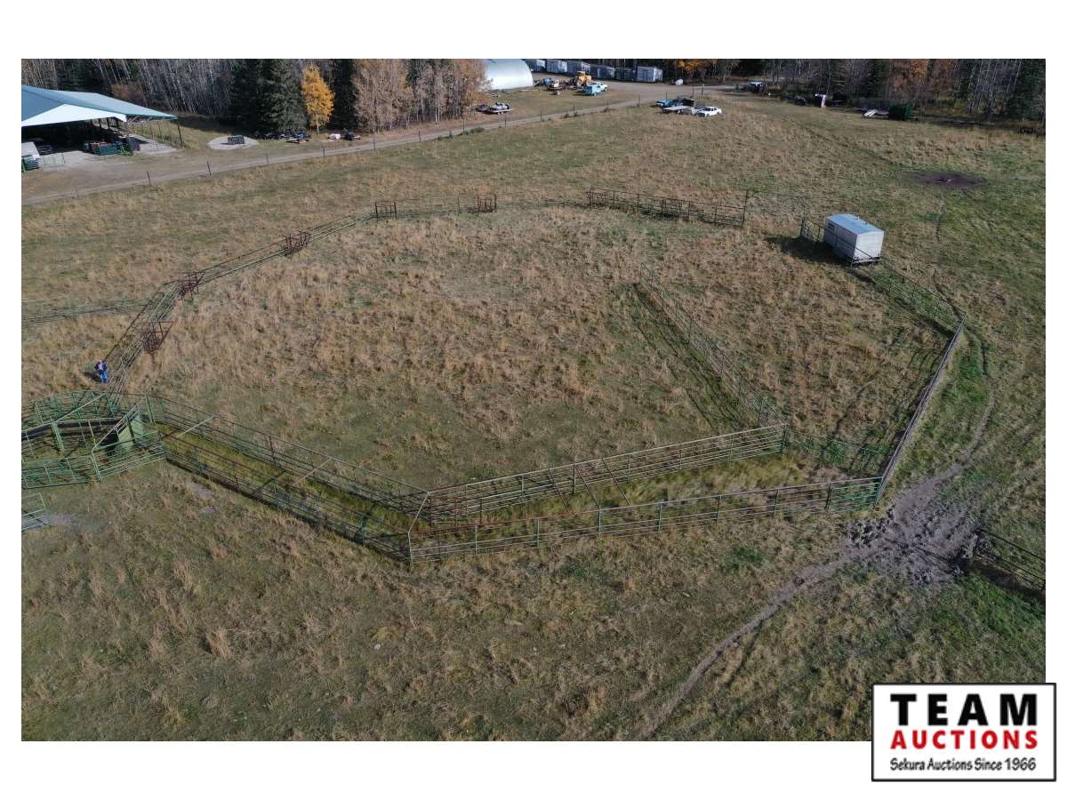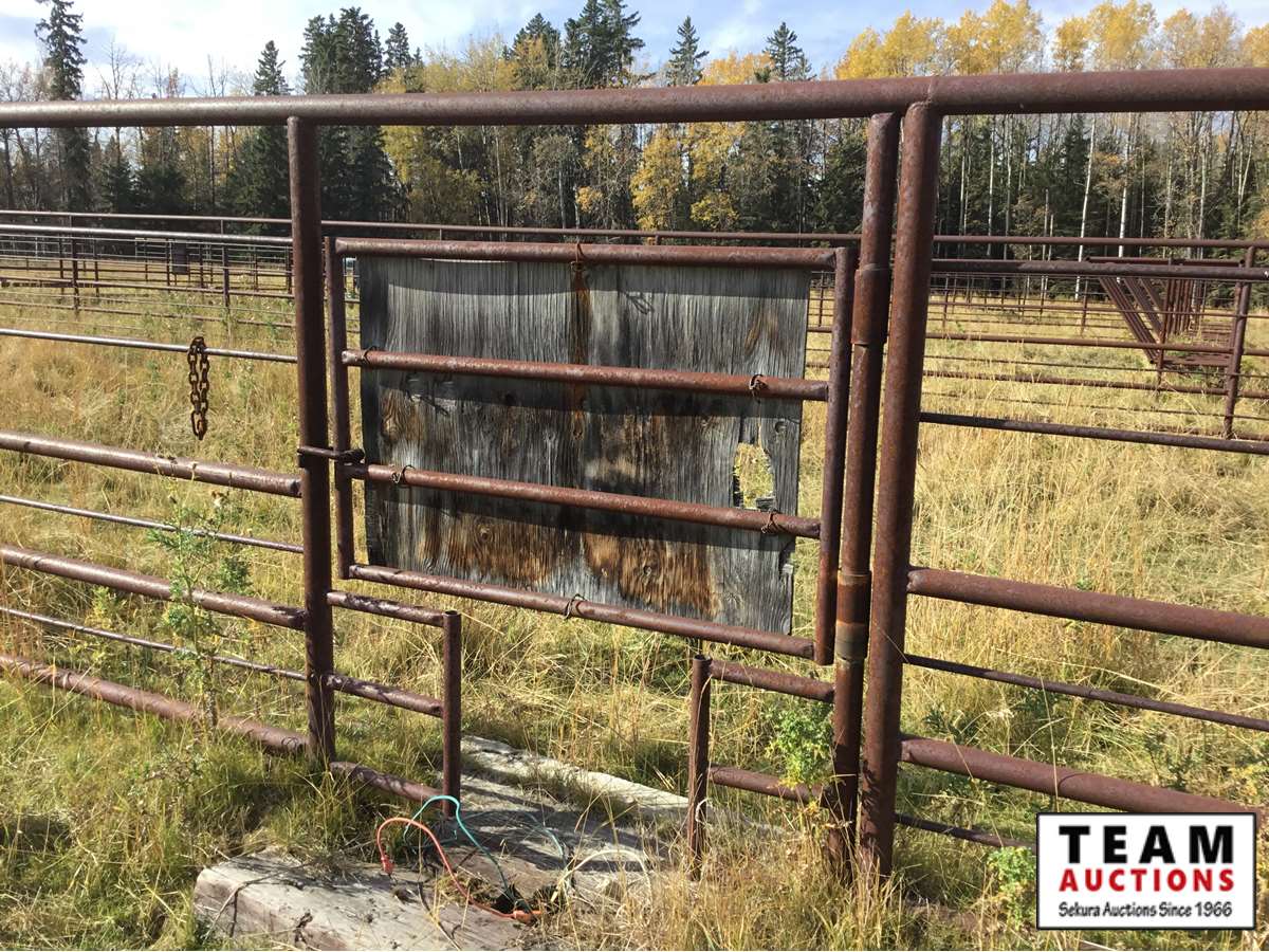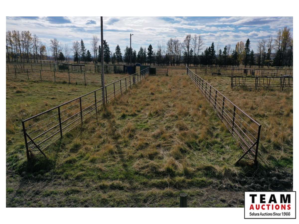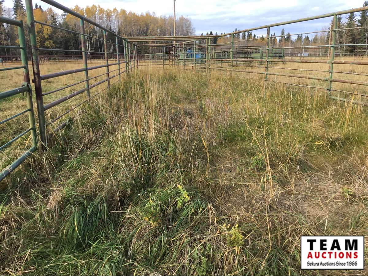 The buyer has to dismantle all corrals and can be cut in 10 foot pieces or more. The buyer is responsible for loading onto their own trailer. We recommend to pull them out as soon as possible before frost moves in or they can stay until next spring. This was a buffalo operation but could be used for cattle. The alley way & blue squeeze does not go with this corral package.