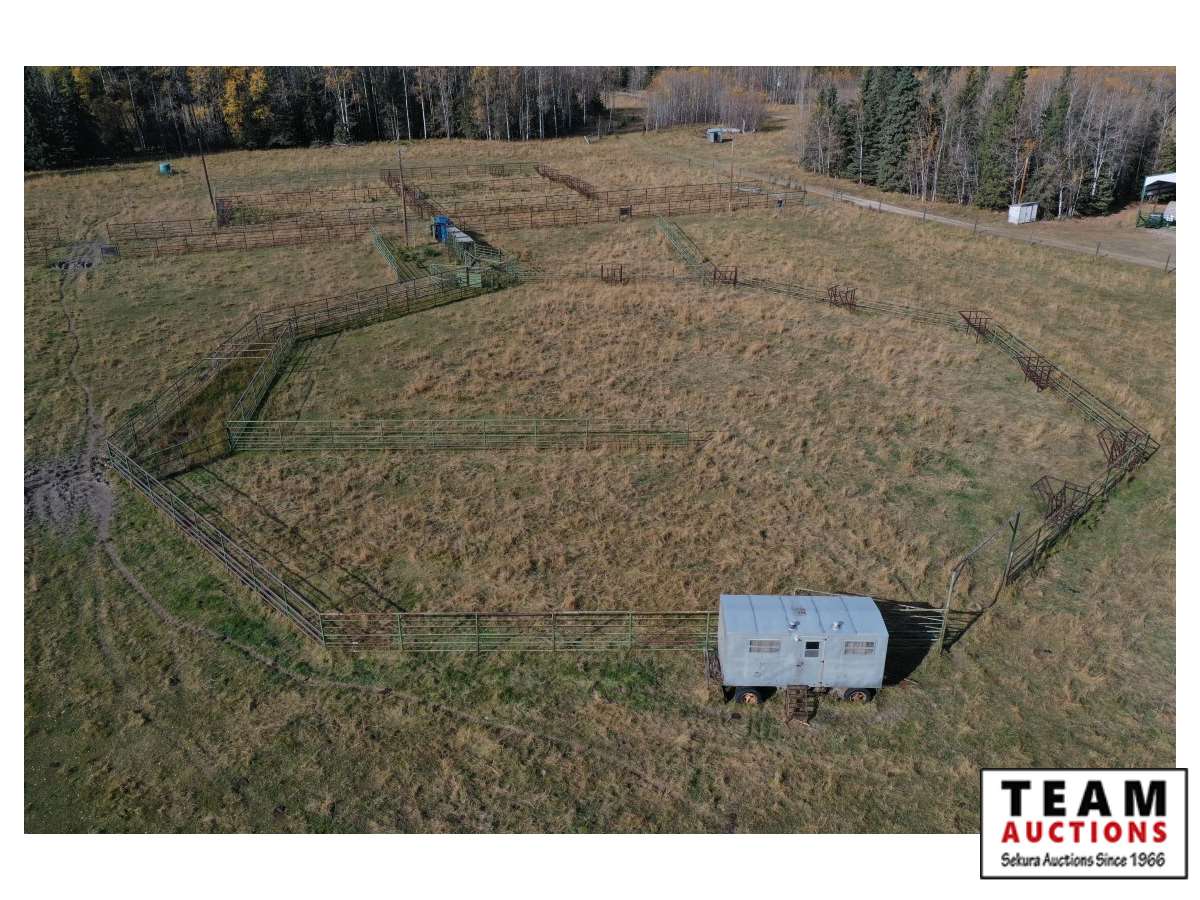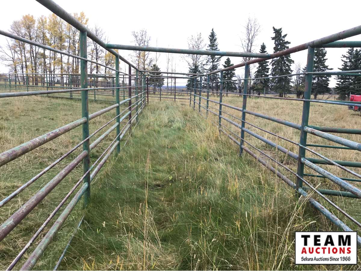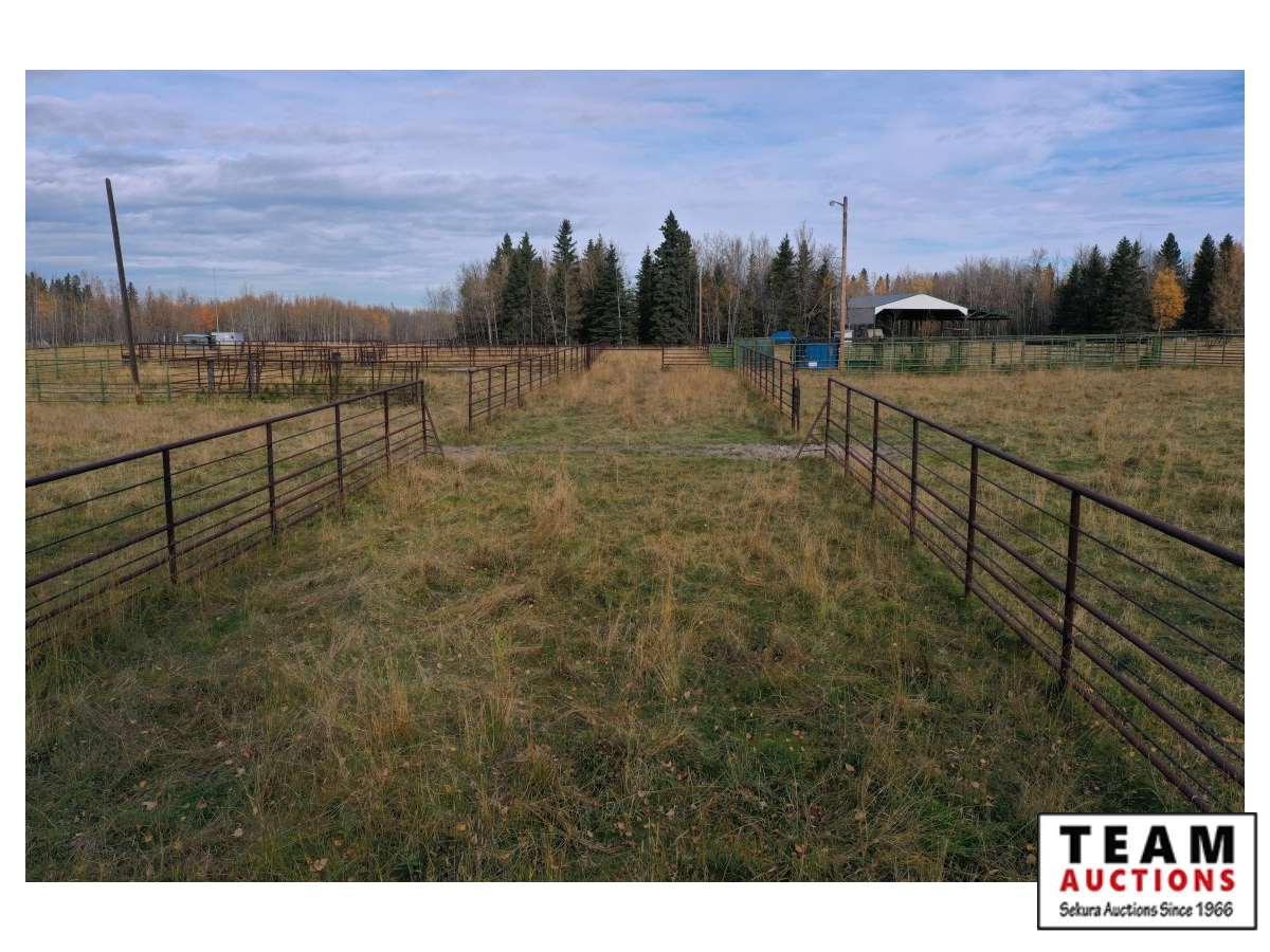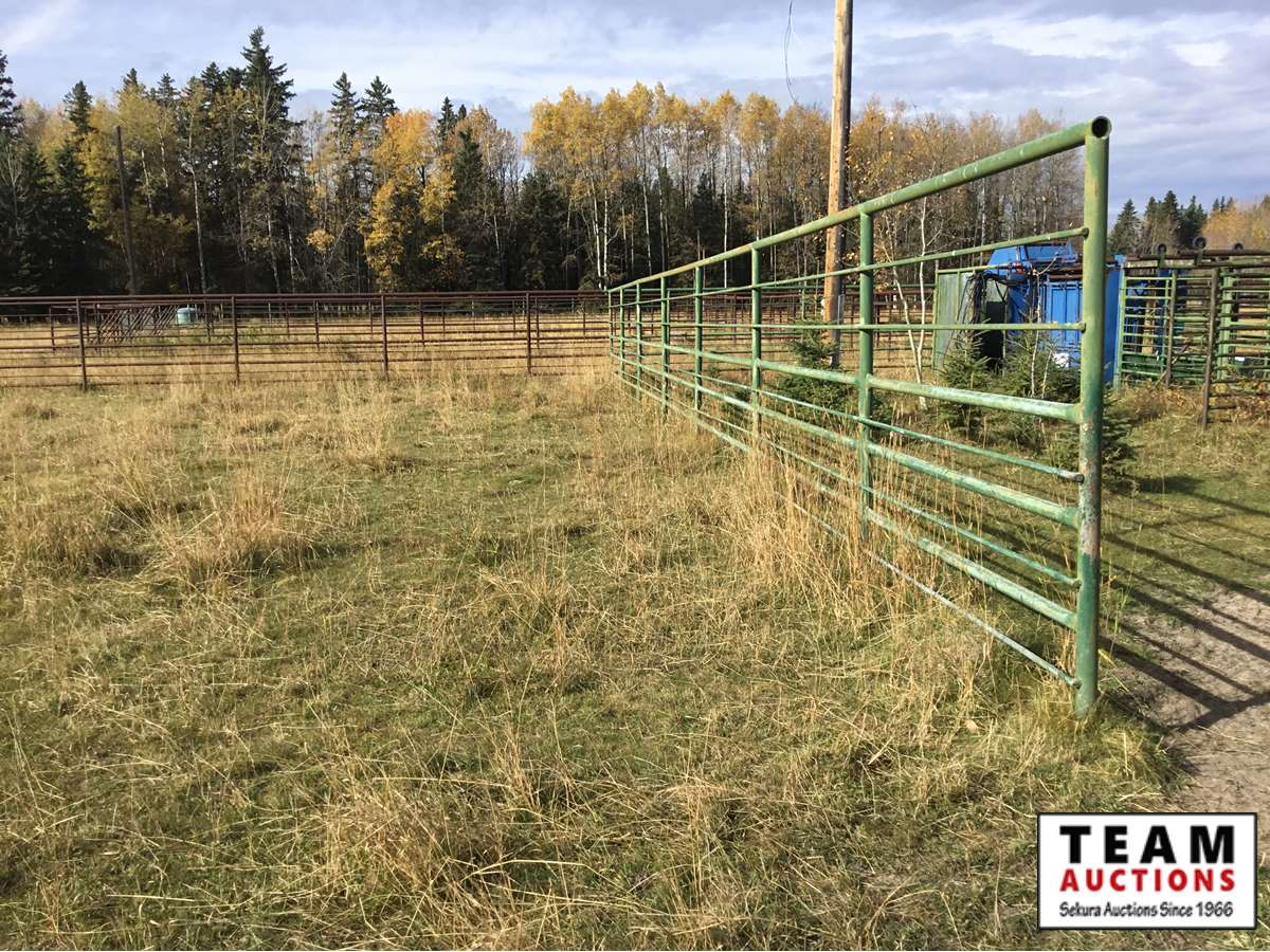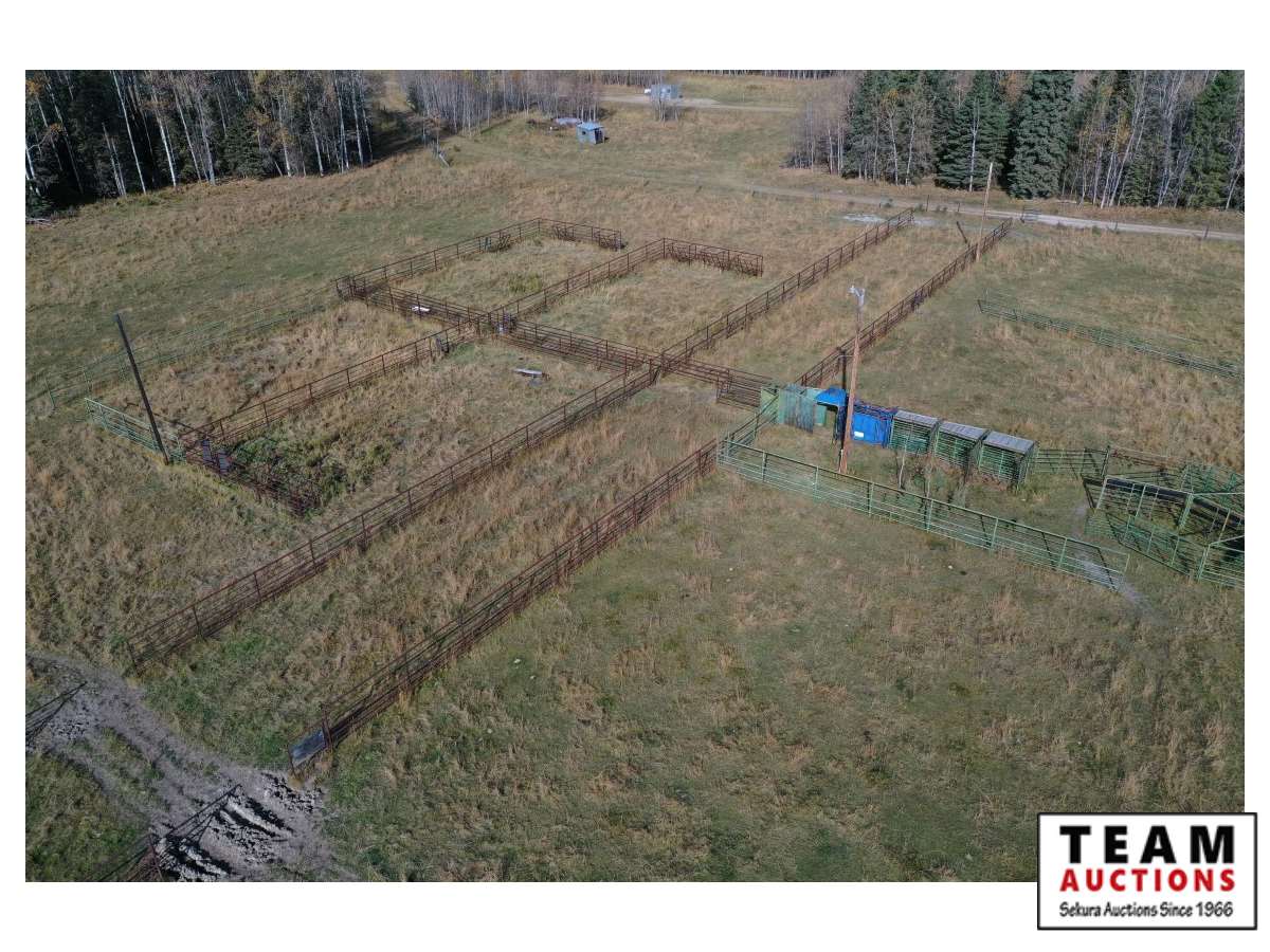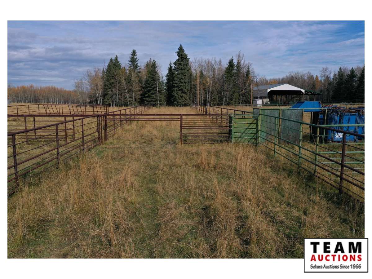 The buyer has to dismantle all corrals and can be cut in 10 foot pieces or more. The buyer is responsible for loading onto their own trailer. We recommend to pull them out as soon as possible before frost moves in or they can stay until next spring. This was a buffalo operation but could be used for cattle. The alley way & blue squeeze does not go with this corral package.