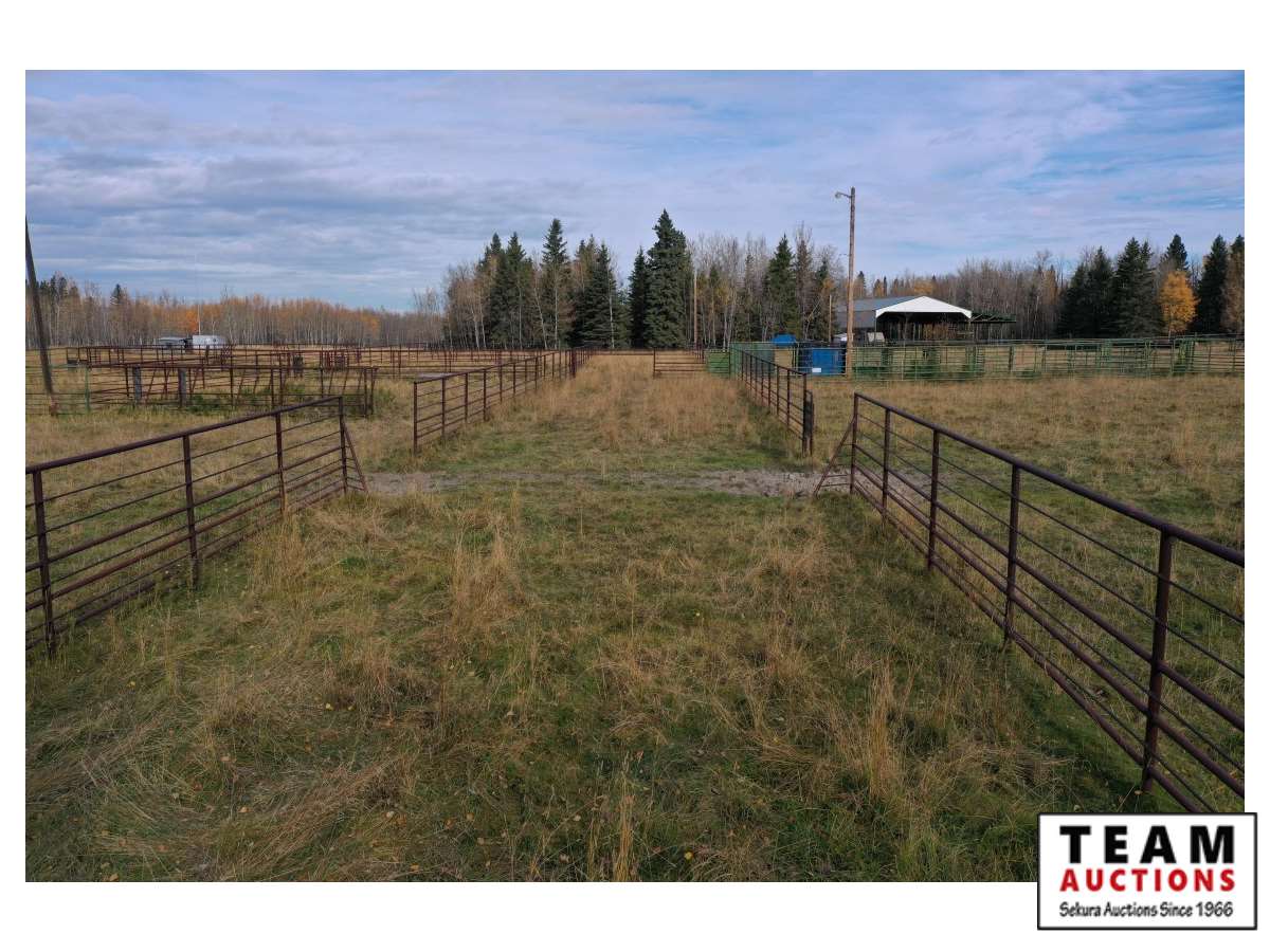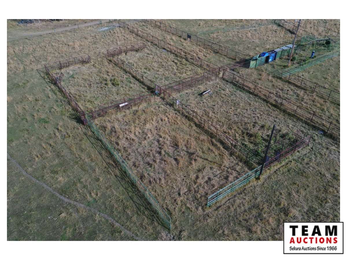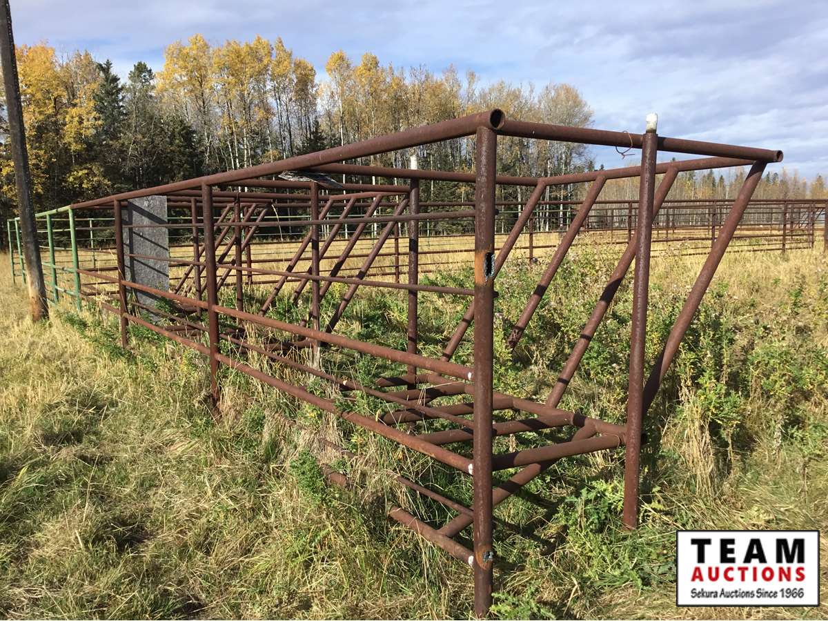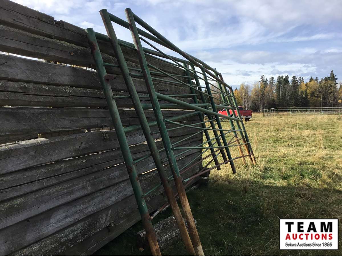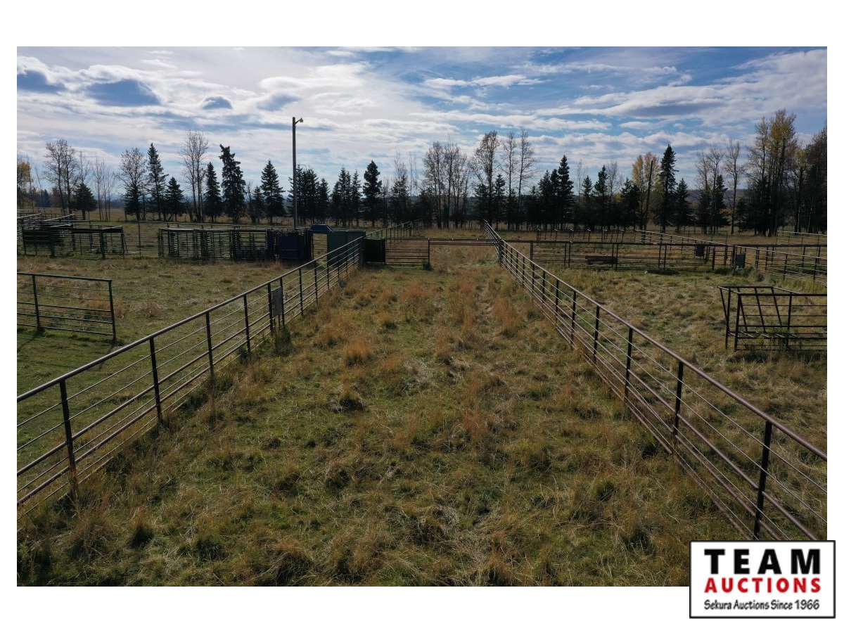 The buyer has to dismantle all corrals and can be cut in 10 foot pieces or more. The buyer is responsible for loading onto their own trailer. We recommend to pull them out as soon as possible before frost moves in or they can stay until next spring. This was a buffalo operation but could be used for cattle. The alley way & blue squeeze does not go with this corral package.