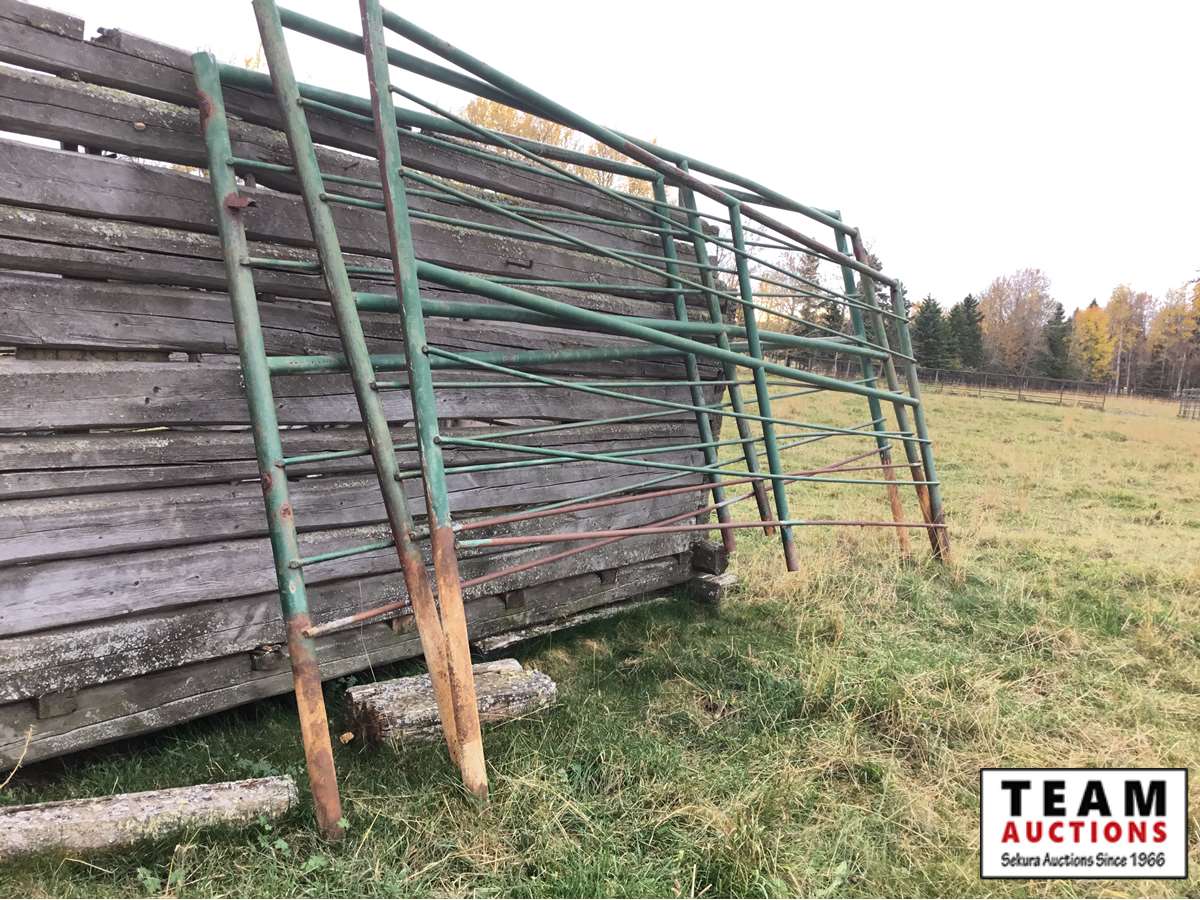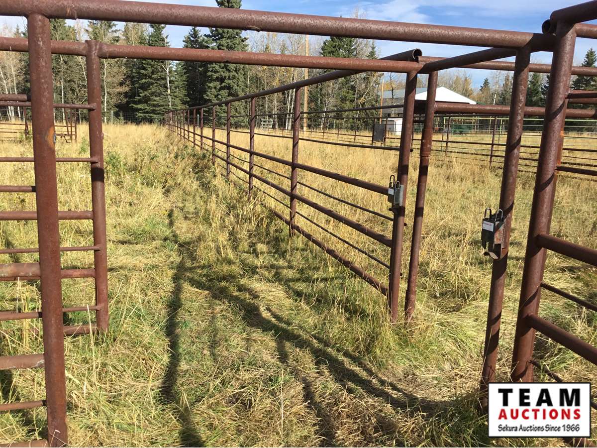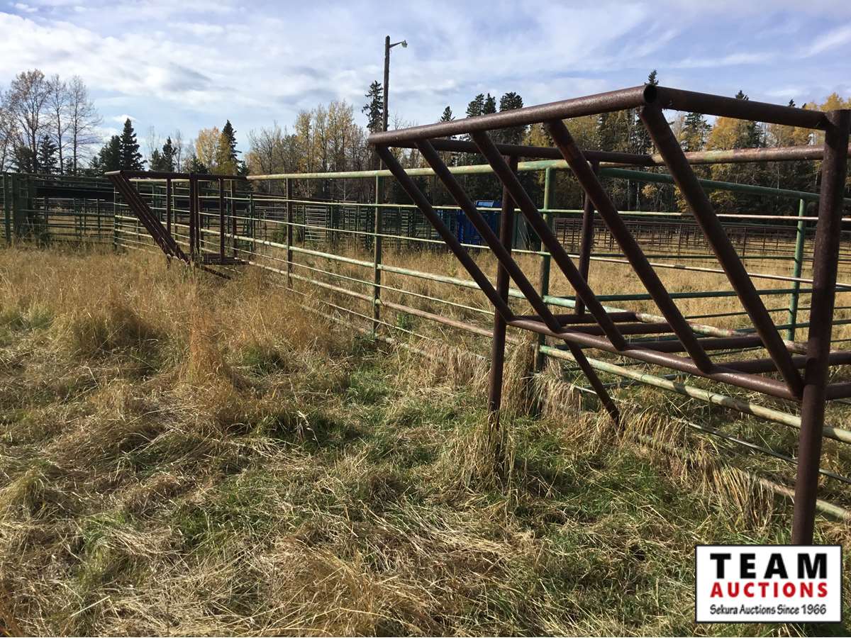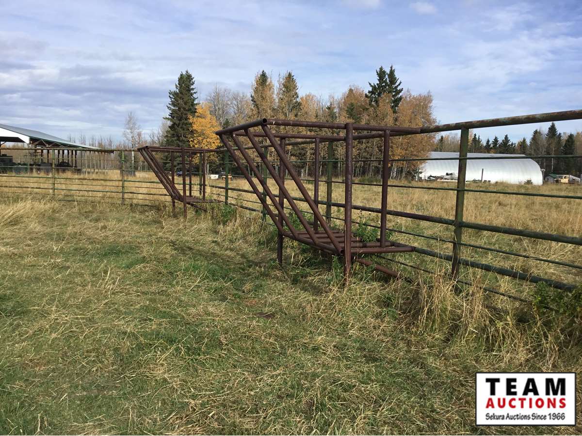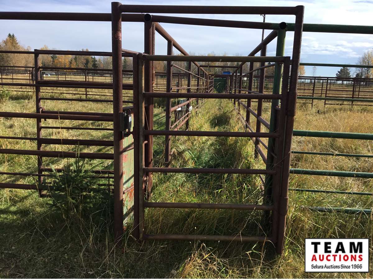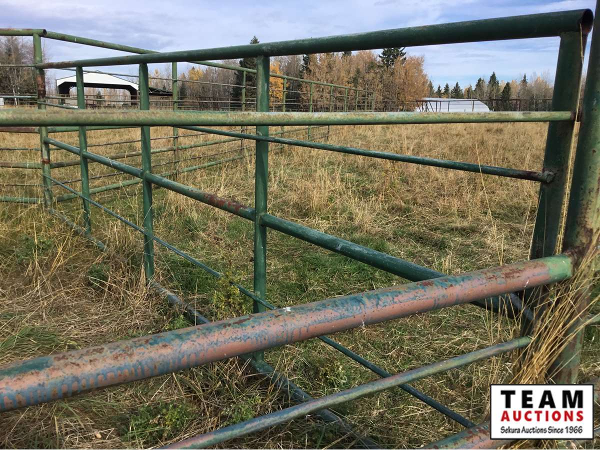 The buyer has to dismantle all corrals and can be cut in 10 foot pieces or more. The buyer is responsible for loading onto their own trailer. We recommend to pull them out as soon as possible before frost moves in or they can stay until next spring. This was a buffalo operation but could be used for cattle. The alley way & blue squeeze does not go with this corral package.