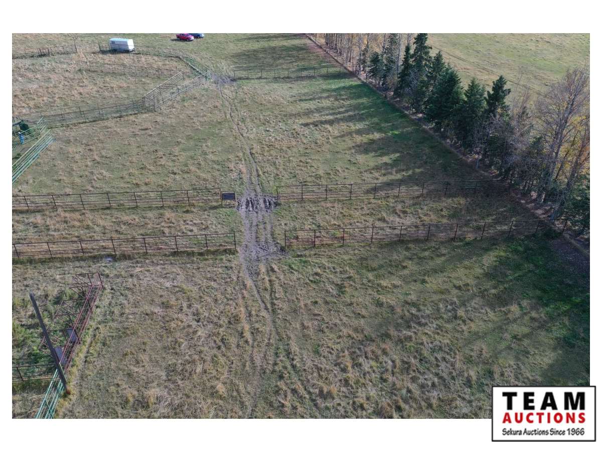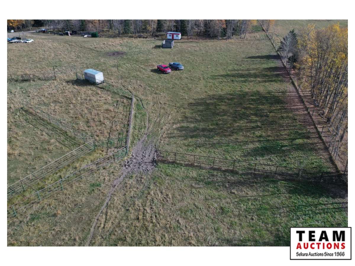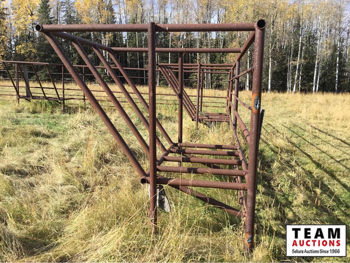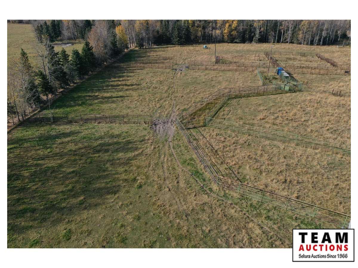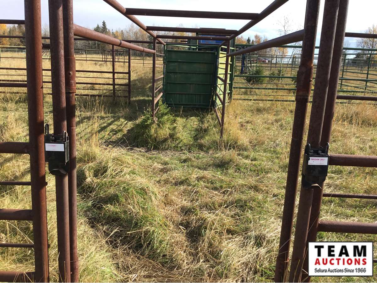 The buyer has to dismantle all corrals and can be cut in 10 foot pieces or more. The buyer is responsible for loading onto their own trailer. We recommend to pull them out as soon as possible before frost moves in or they can stay until next spring. This was a buffalo operation but could be used for cattle. The alley way & blue squeeze does not go with this corral package.