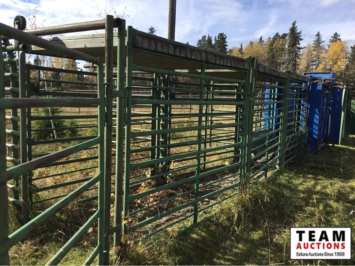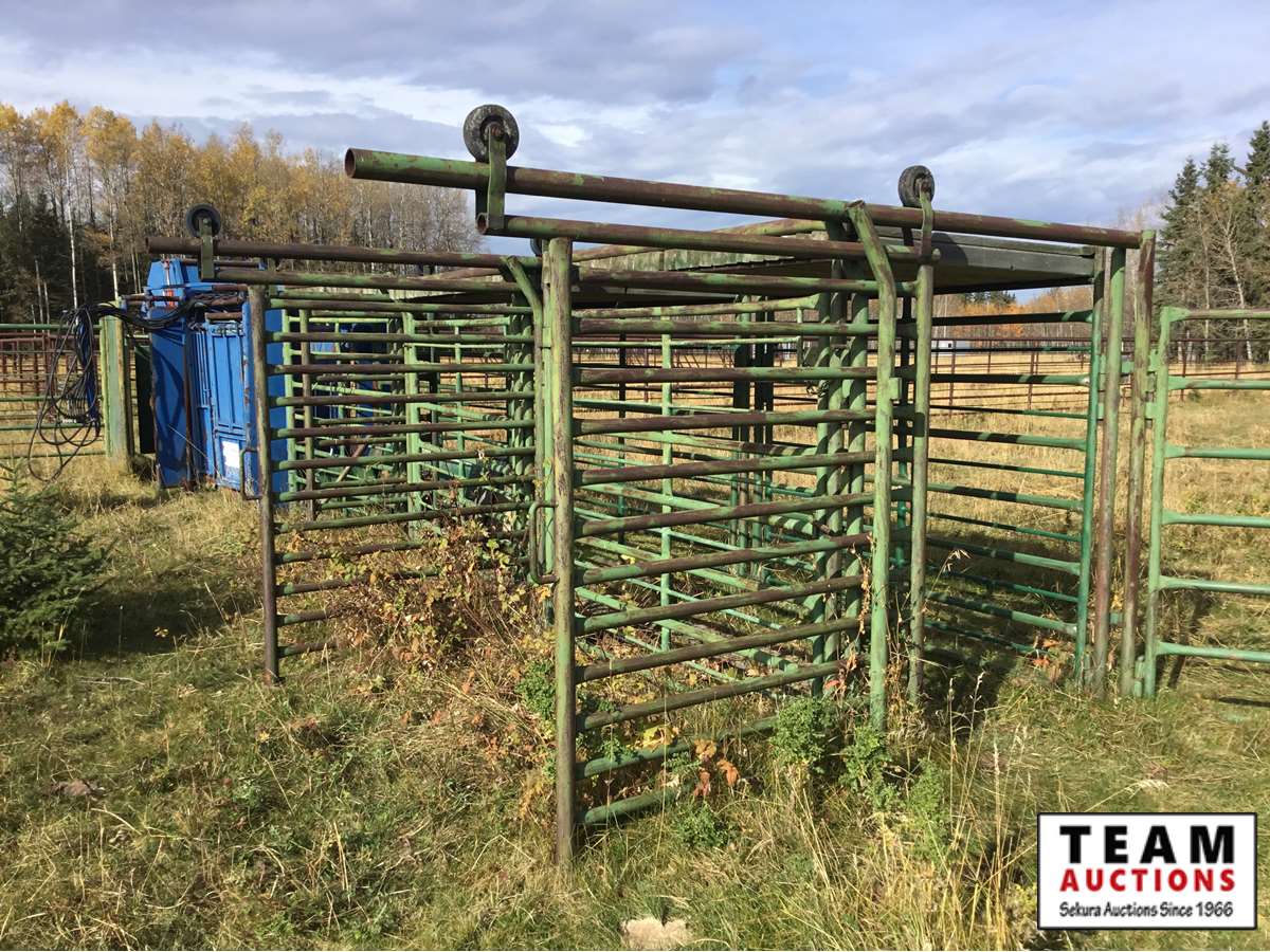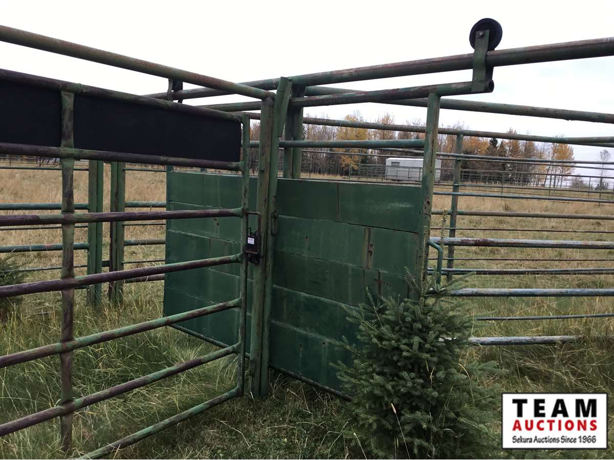 Blue squeeze gate not included. Buyer is responsible for disassembly. Seller will load on to trailer for buyer.