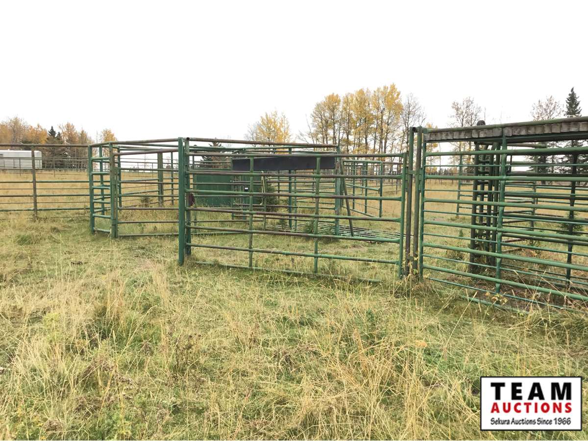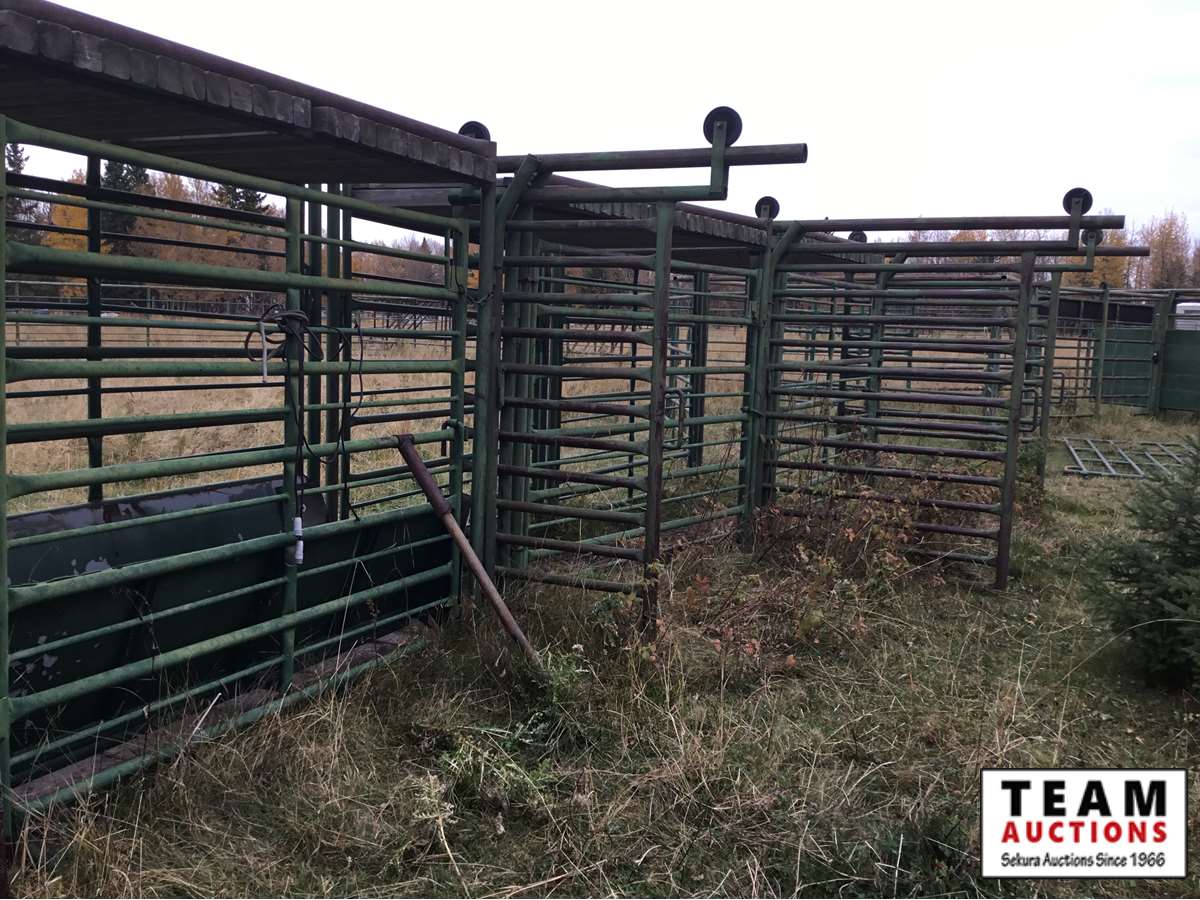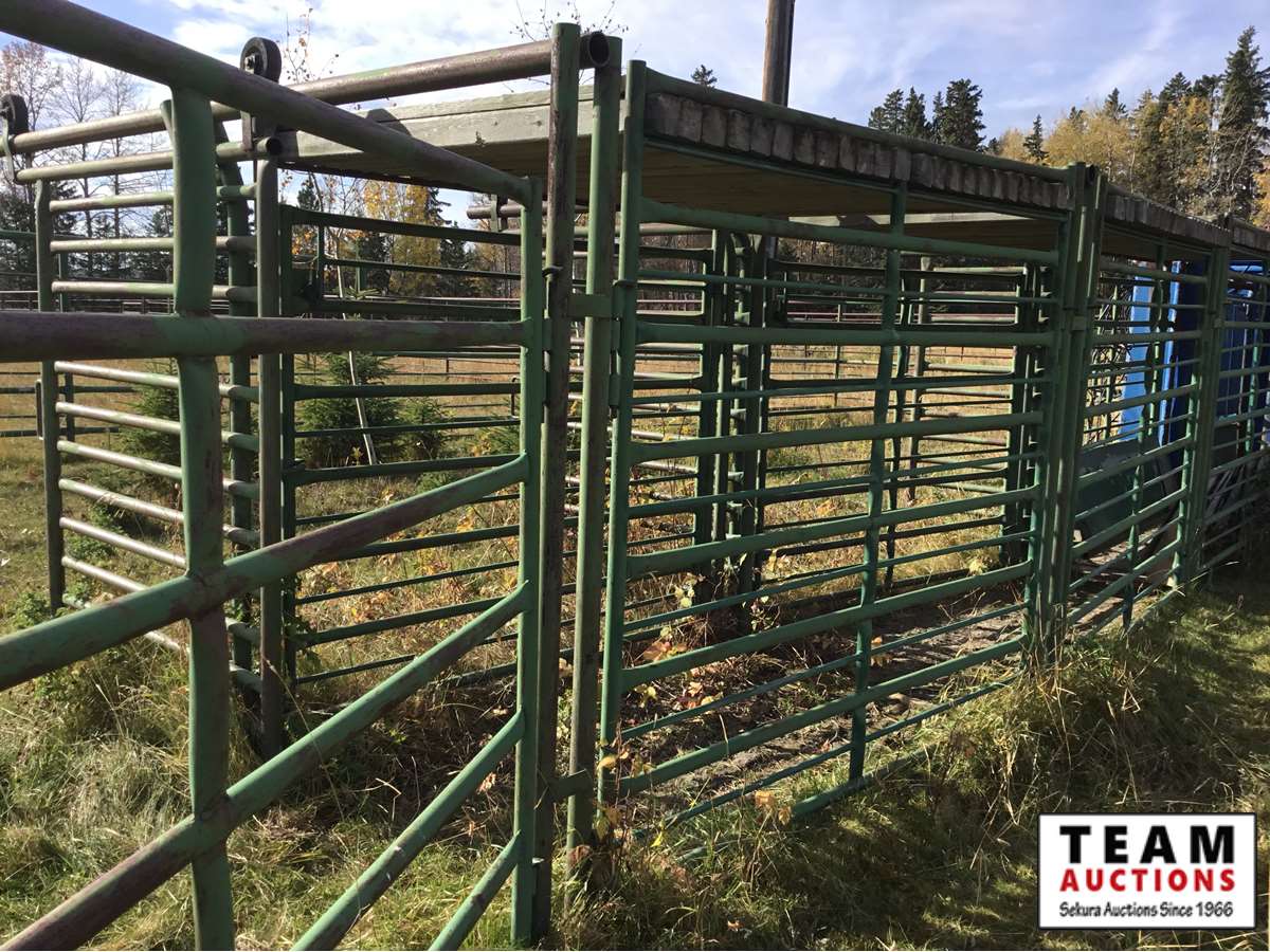 Blue squeeze gate not included. Buyer is responsible for disassembly. Seller will load on to trailer for buyer.