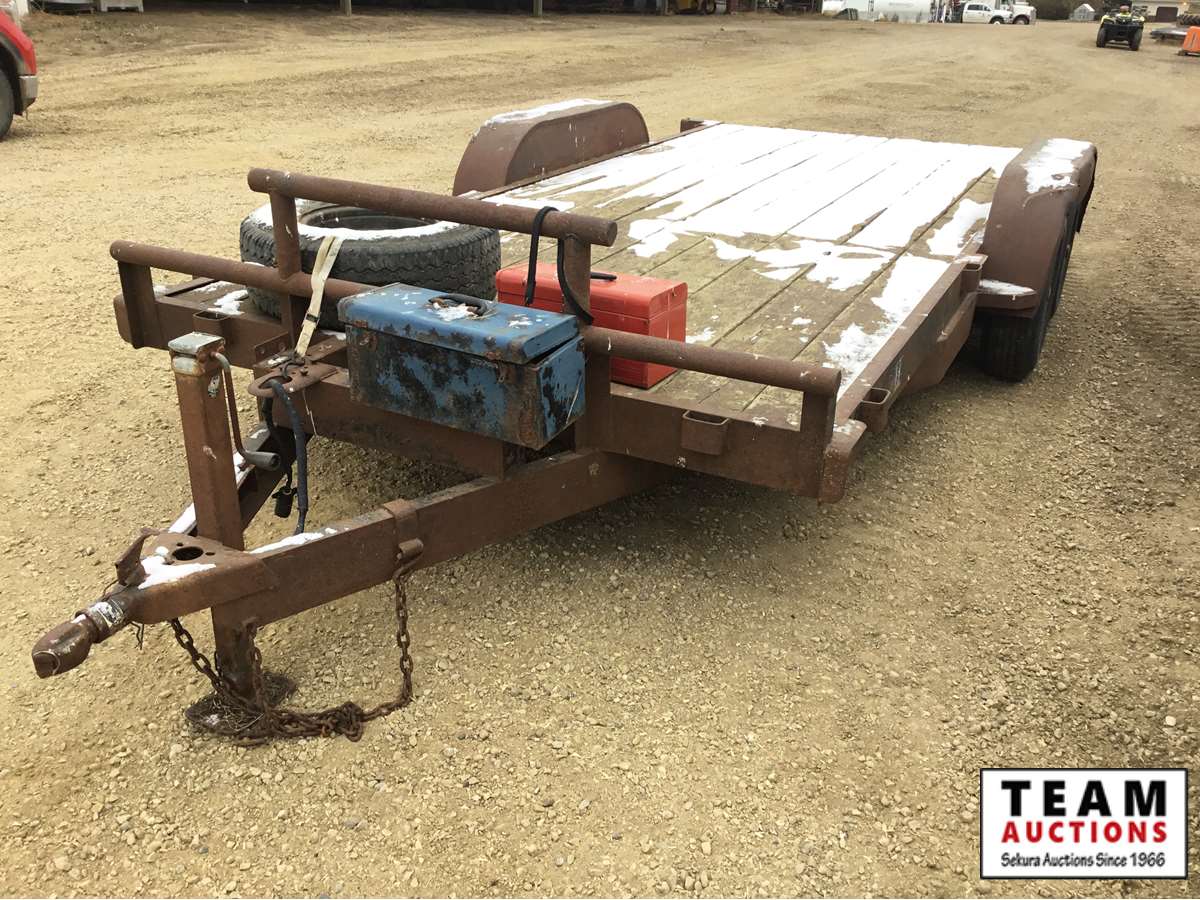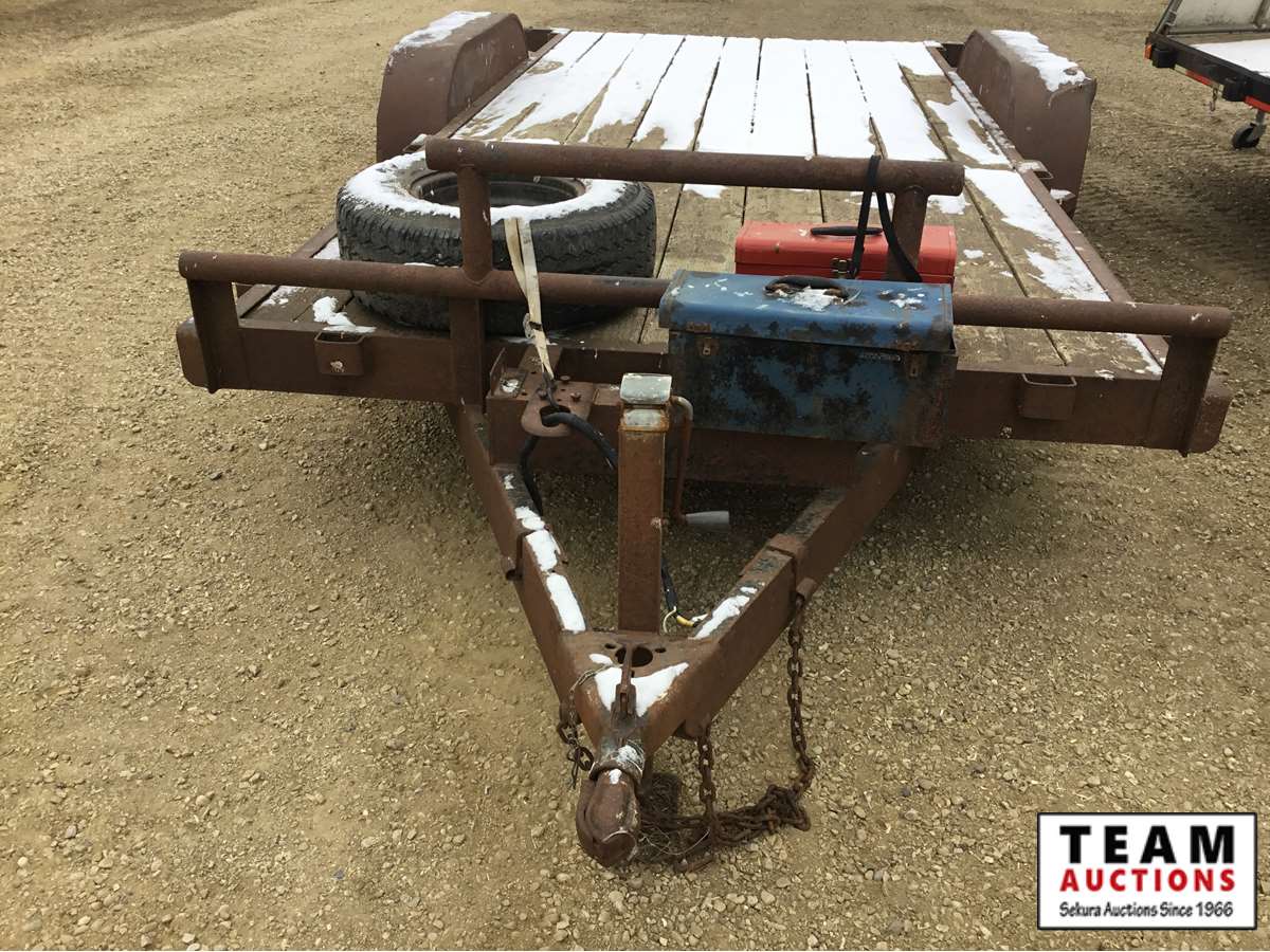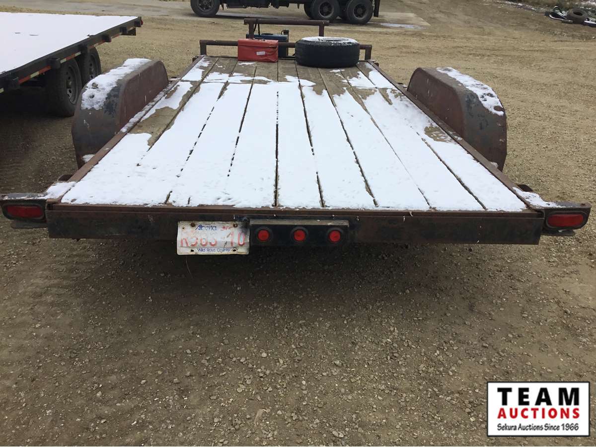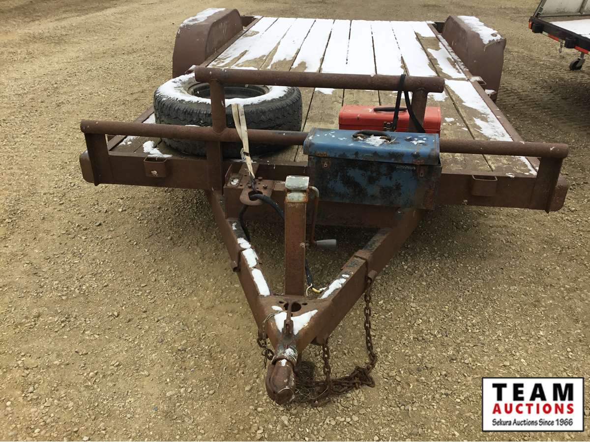5000 lb axles, under deck slide in ramps, tool box for tie down strap storage, Alberta registered, have copy of registration.