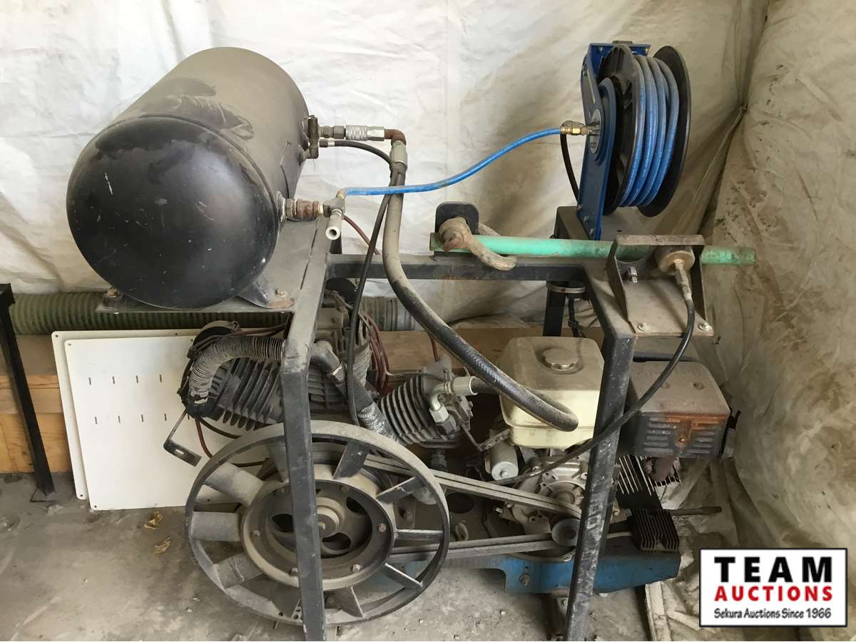 air tank, 15 HP gas engine, hose reel