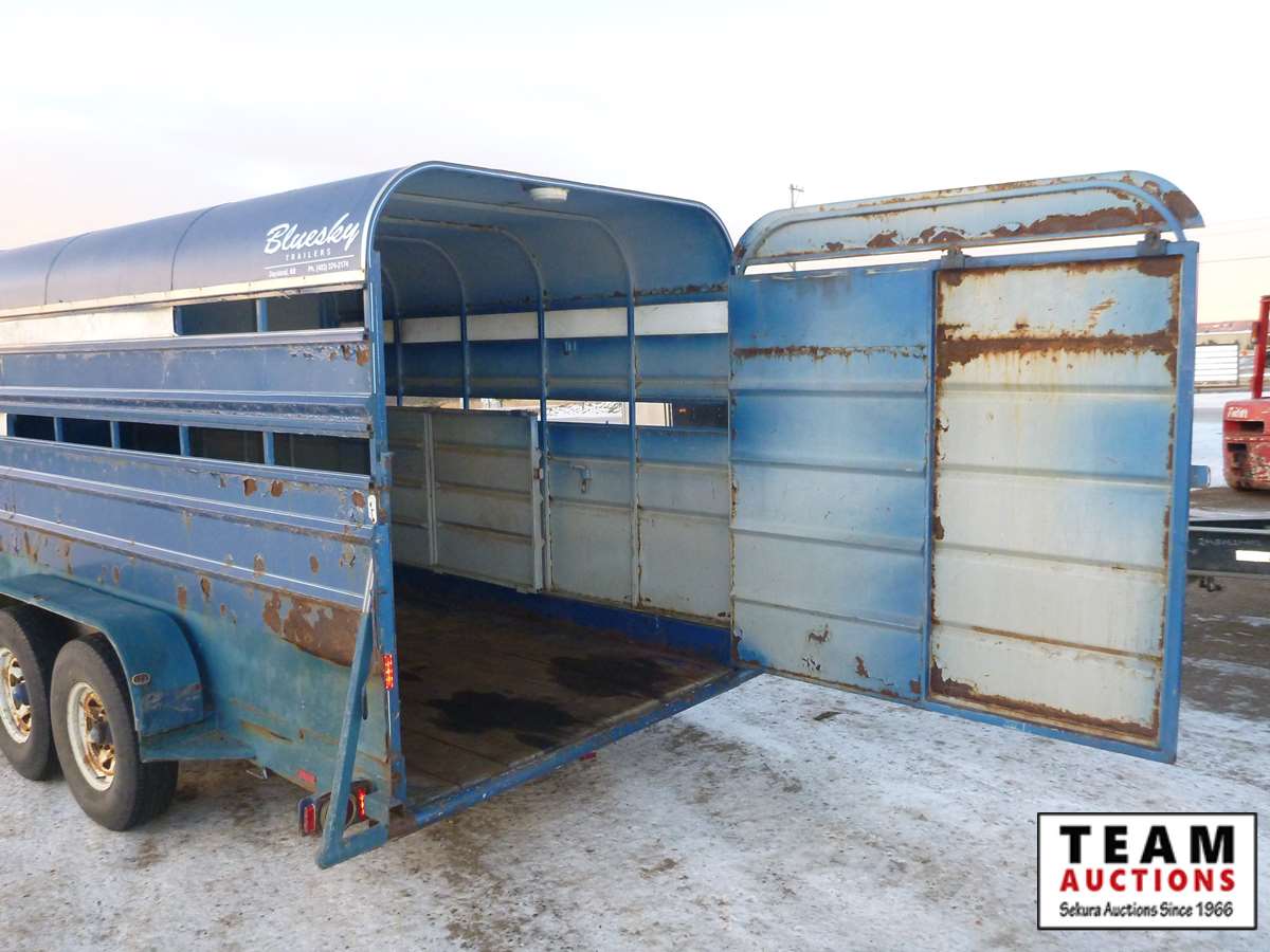 sliding and swinging rear door, center gate, upper storage deck, 7000 lb torsion flex axles, Armagaurd coating since new, Alberta registered.