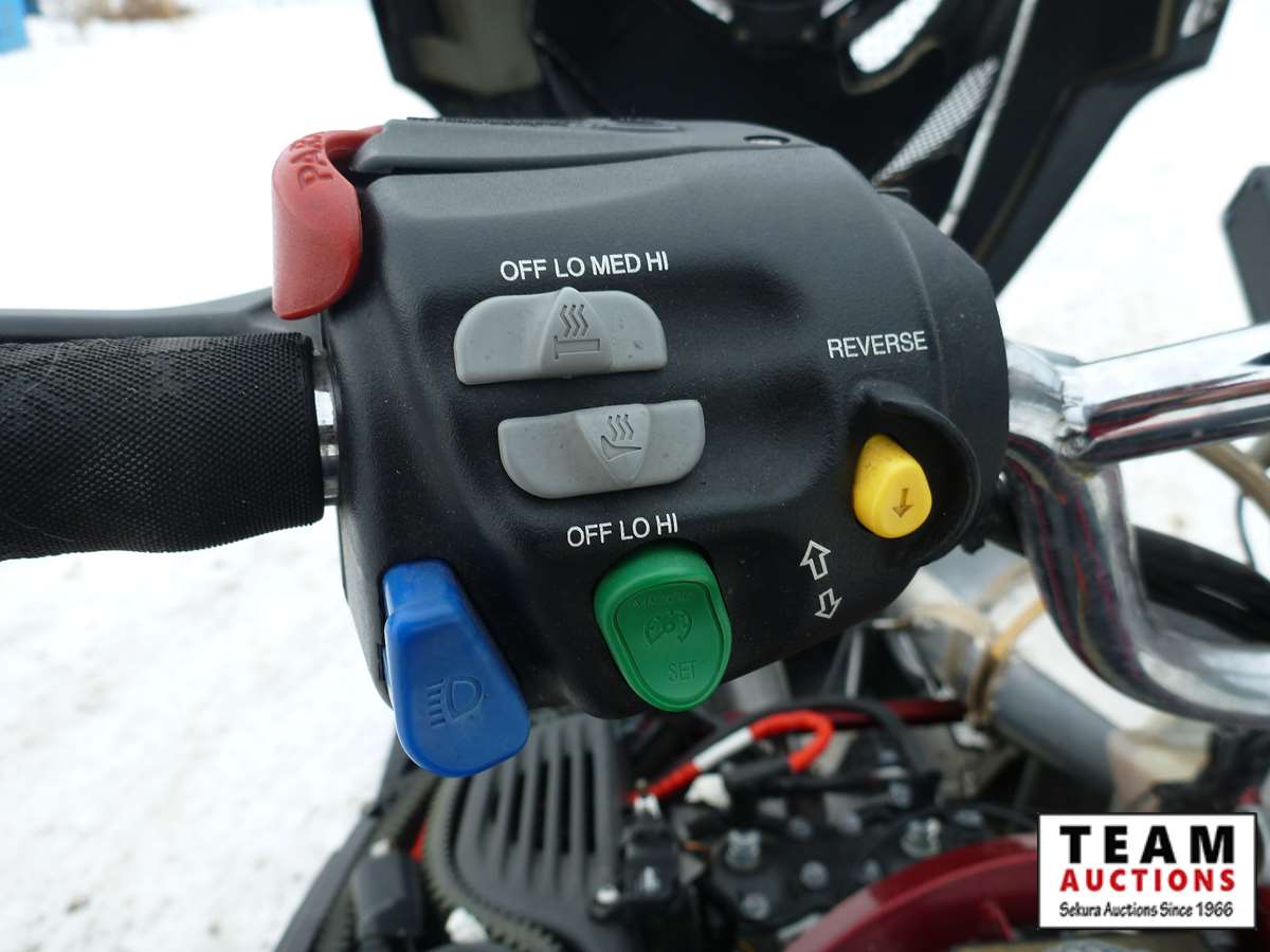 Digatron display, reverse, pull start, cover, handle bar riser, carbon fiber under carriage, spare gas tank, 1956 kms showing, Alberta registered