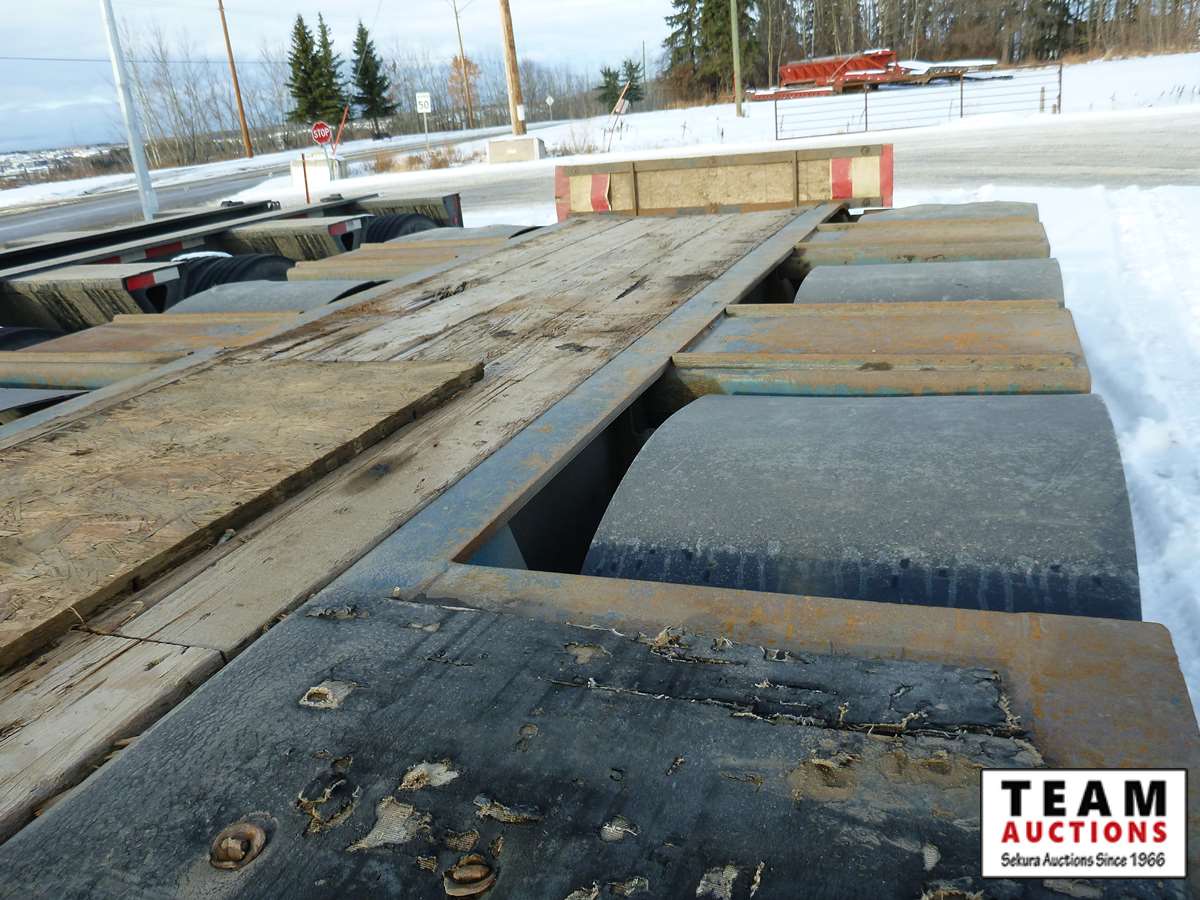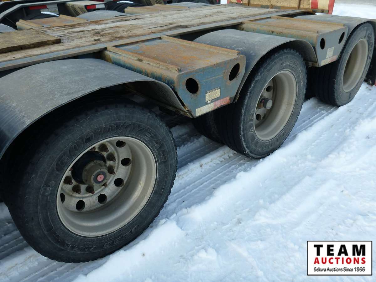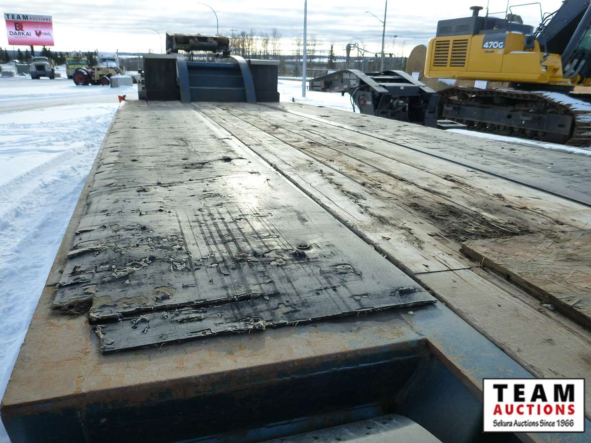 extendable neck, 25' main deck, 10' wide, air ride, GVW 59875 kgs, plumbed and set up for rear S/A booster, rear strobe lights, swing out wide load lights, 275/70R22.5 tires on aluminum rims, Alberta Registered, CVIP 2021 Aug.