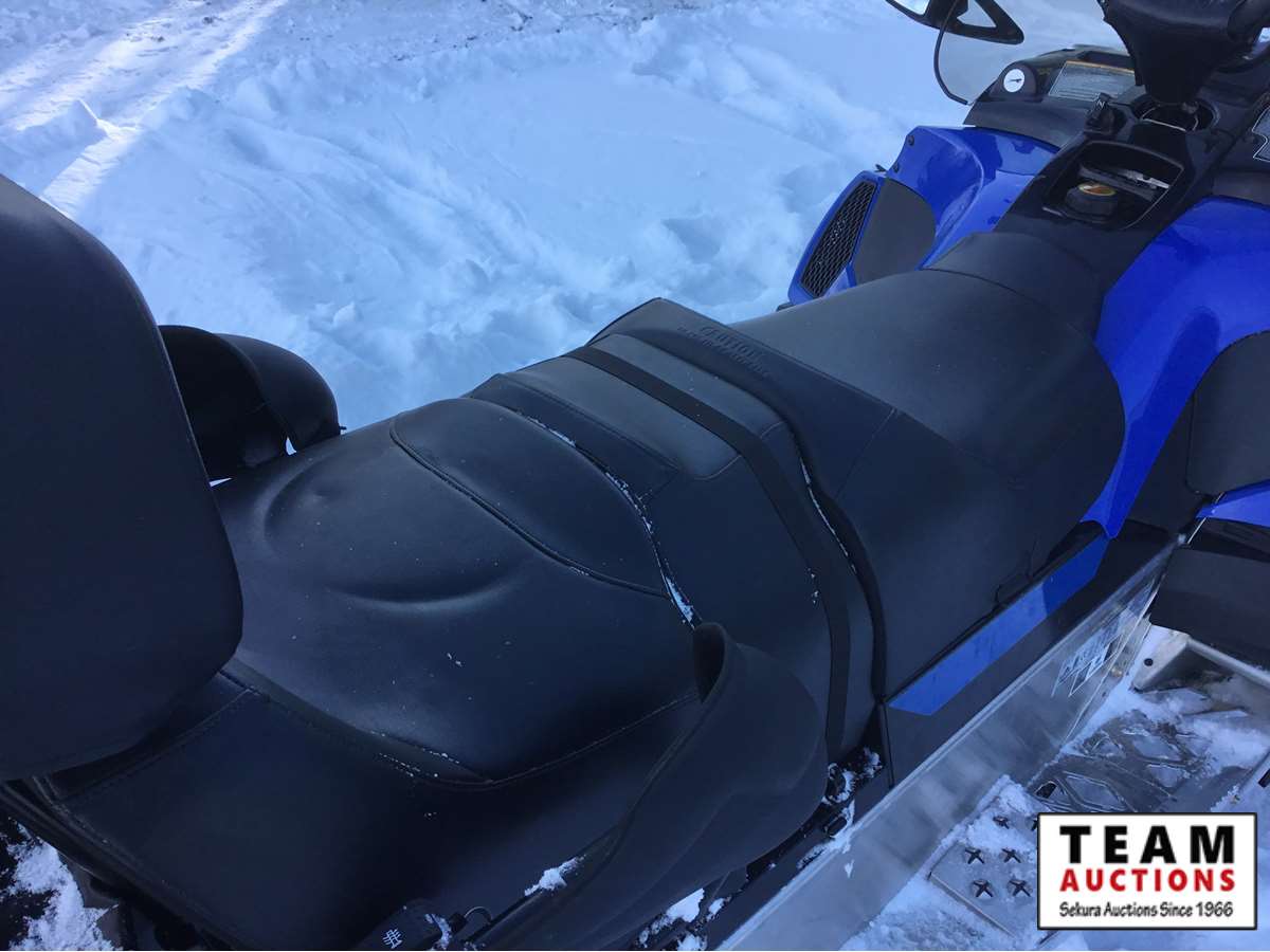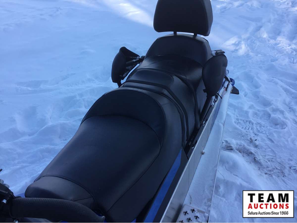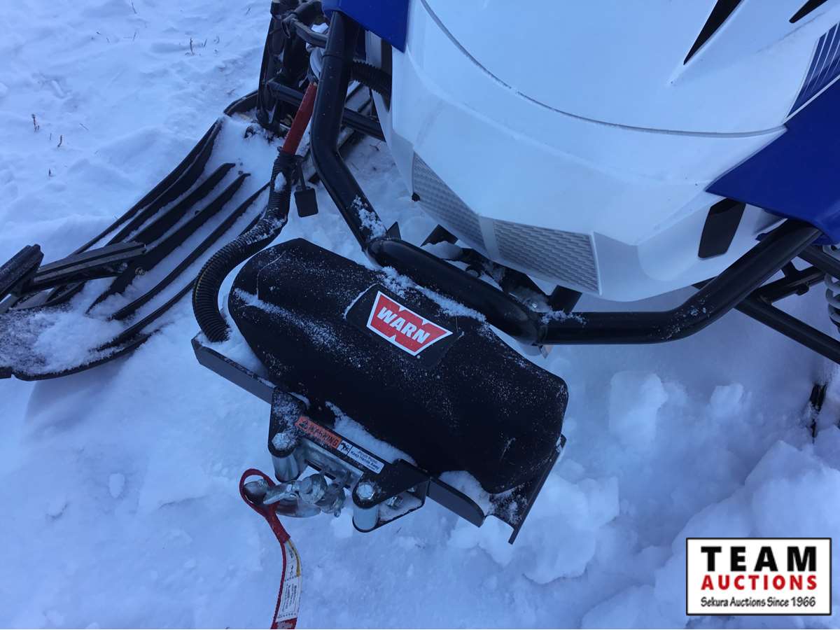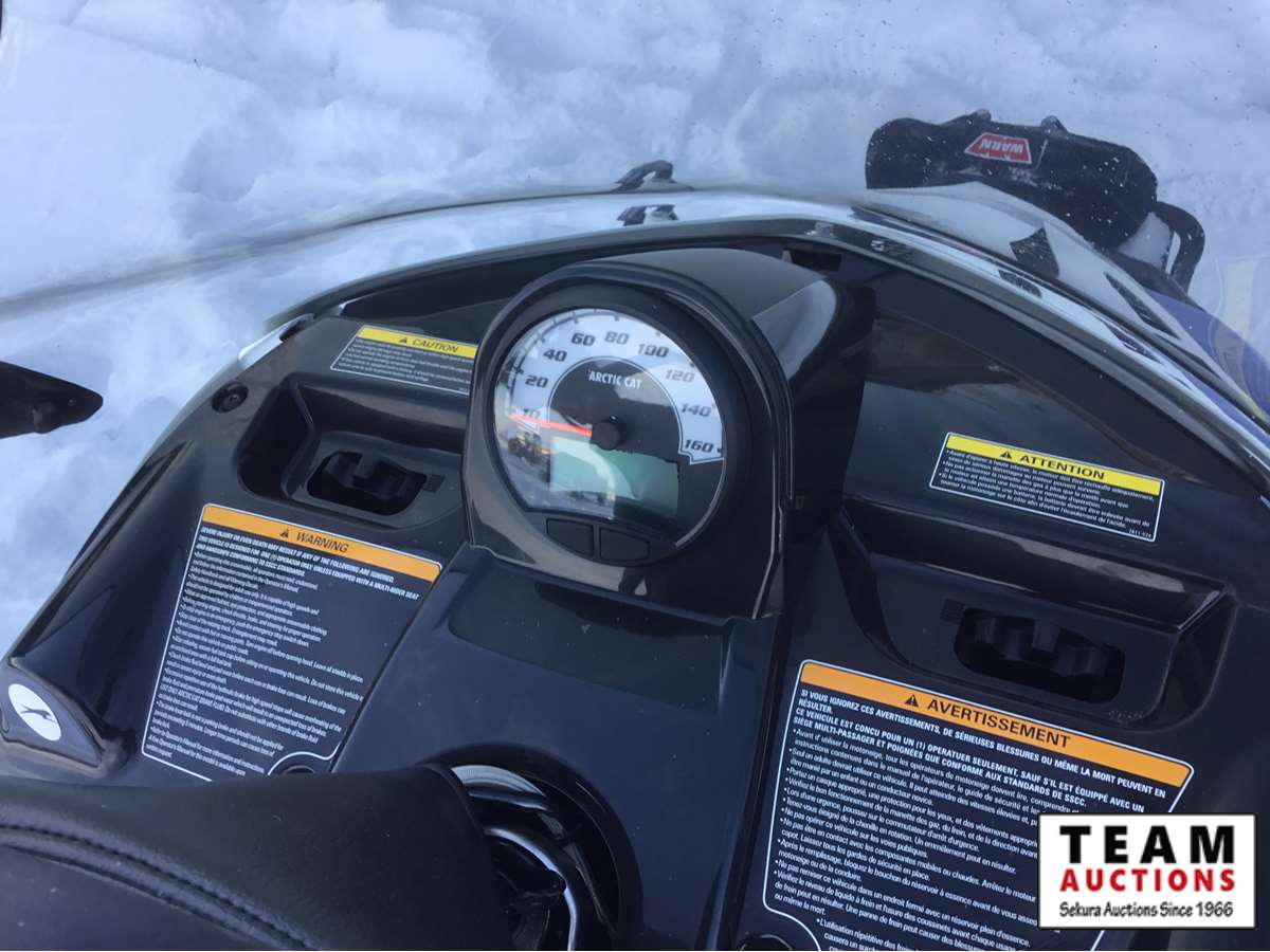 electric start fan cooled engine, 20" wide x 154' long track, 1 3/8" track lug height, front mount factory installed winch with cover, reverse with transfer case for extra pulling power, 17 US gal fuel tank, (3) person optional seat with back rest, rear storage, rear tow hitch, rear back up light, hand warmers, mirror kit, higher windshield, 5 miles, 1.7 engine hours on unit