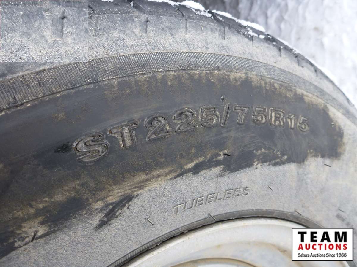 rear fold down door, side entry door, front fold down door, GVW 9800 lbs, 6 bolt axle, 8' 6" width, interior height 6' 8", 225/75R15 rubber, Alberta Registered