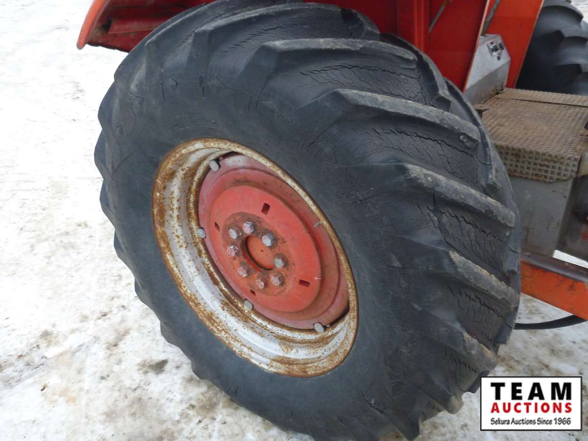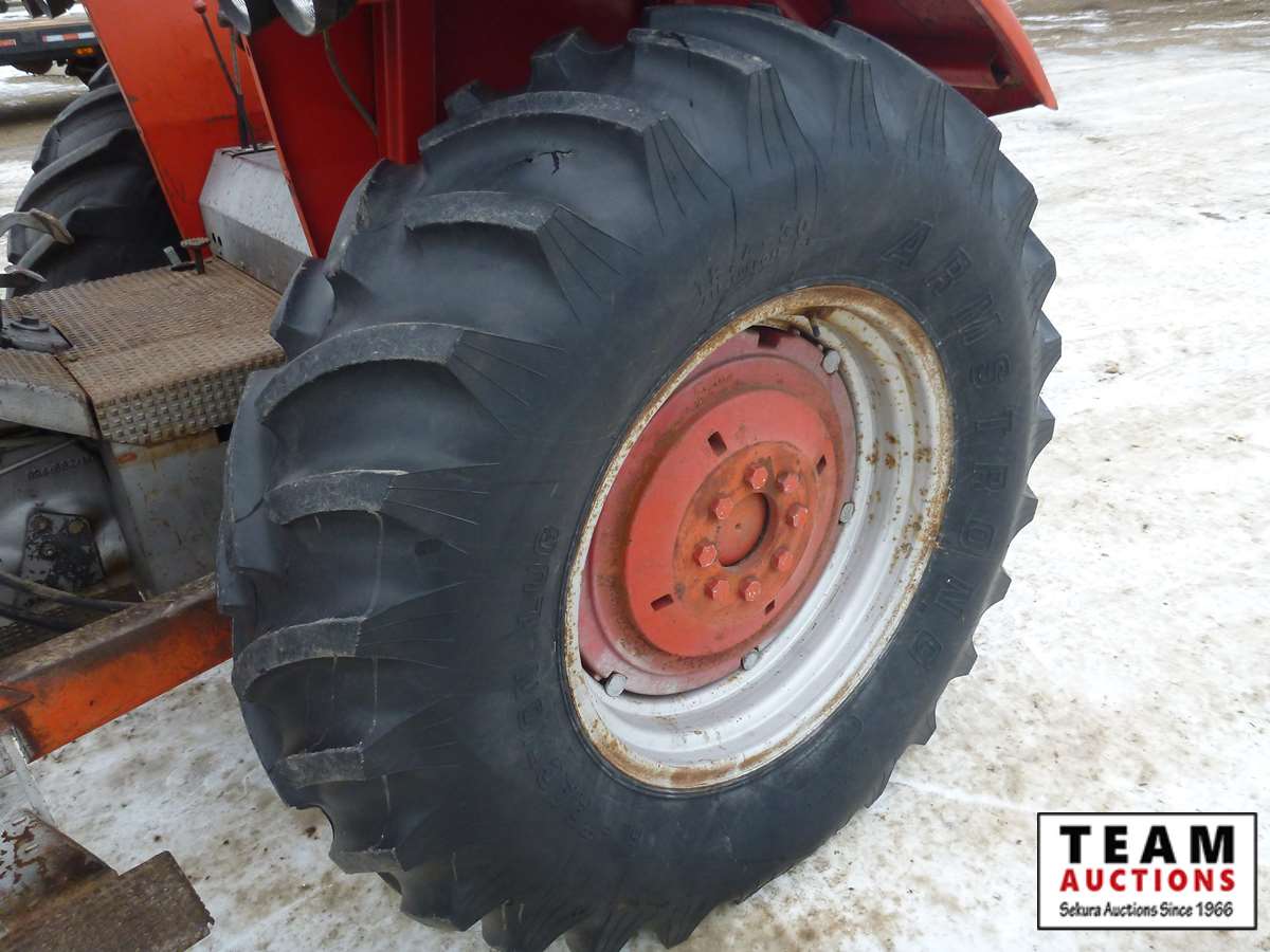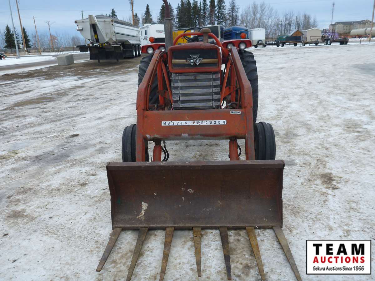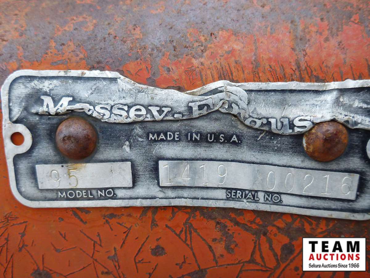 MF 95 loader, 60" fork bucket, Perkins 4 cylinder diesel engine, 540 pto, dual rear hydraulics, 18.4x30 rear tires, 3010 hrs showing