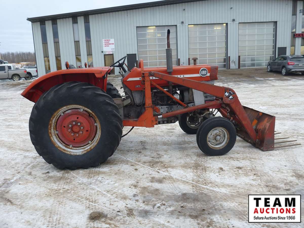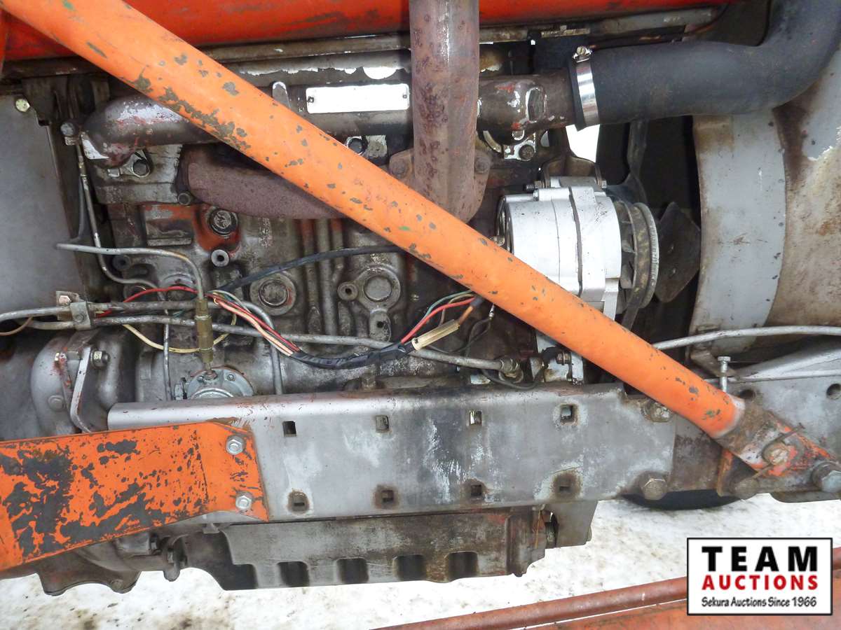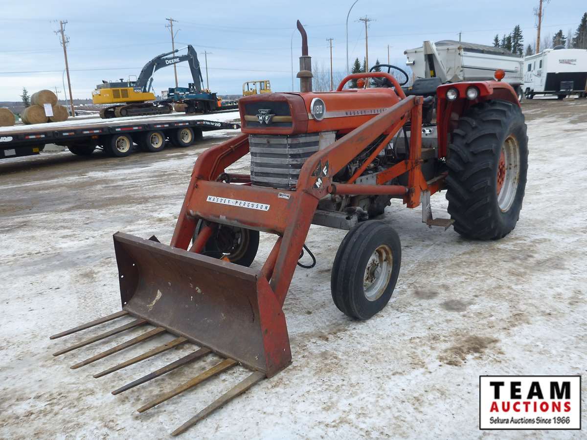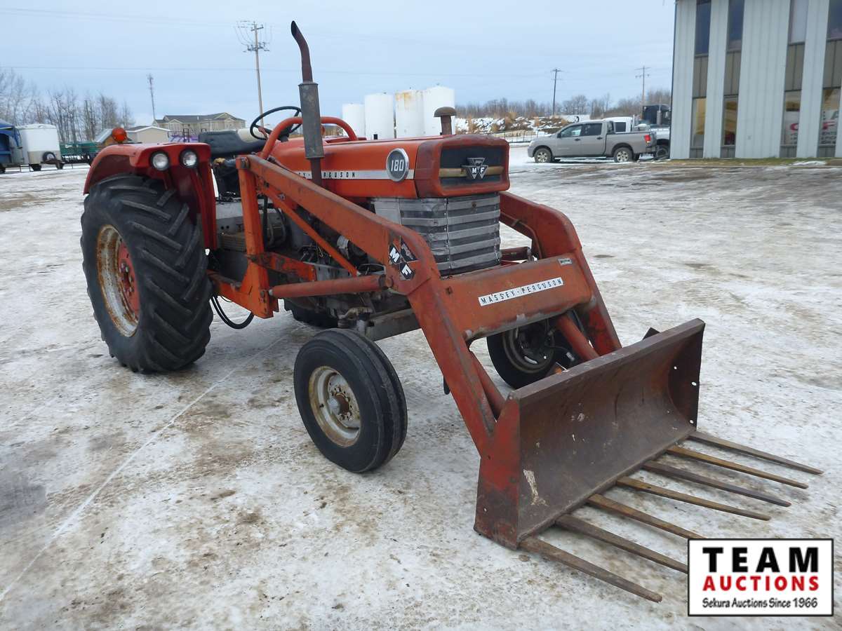 MF 95 loader, 60" fork bucket, Perkins 4 cylinder diesel engine, 540 pto, dual rear hydraulics, 18.4x30 rear tires, 3010 hrs showing