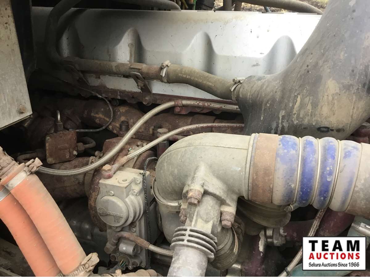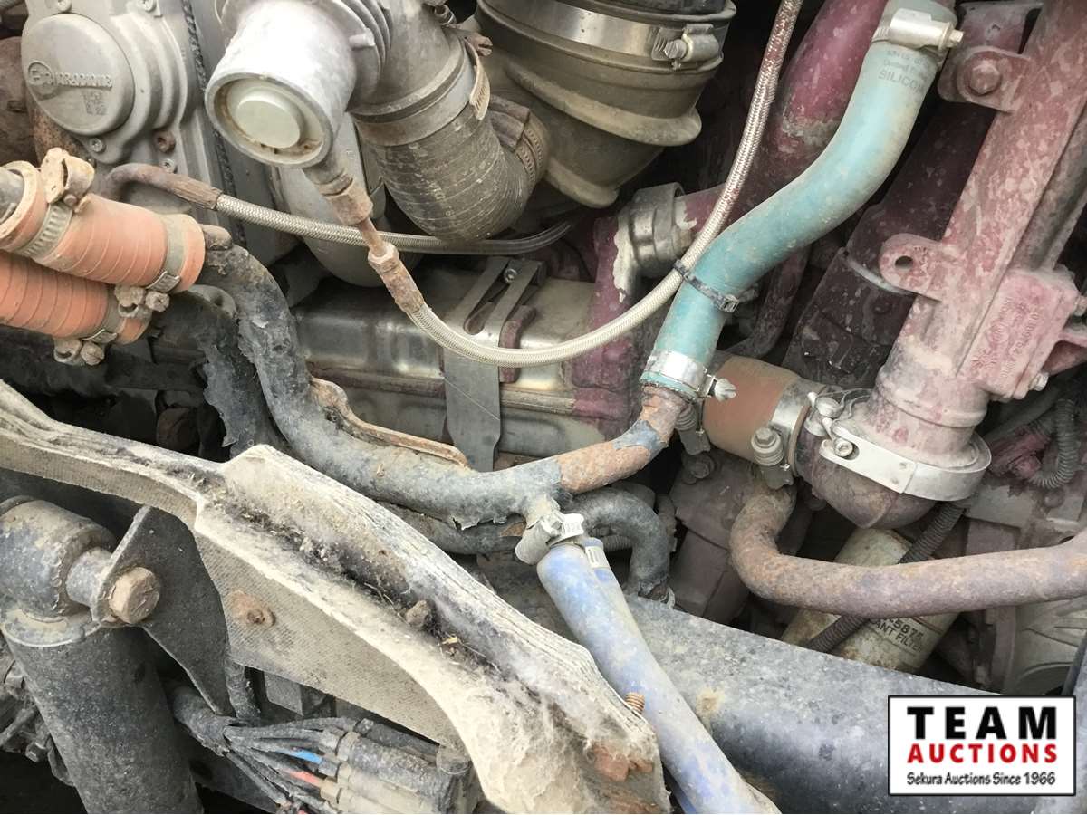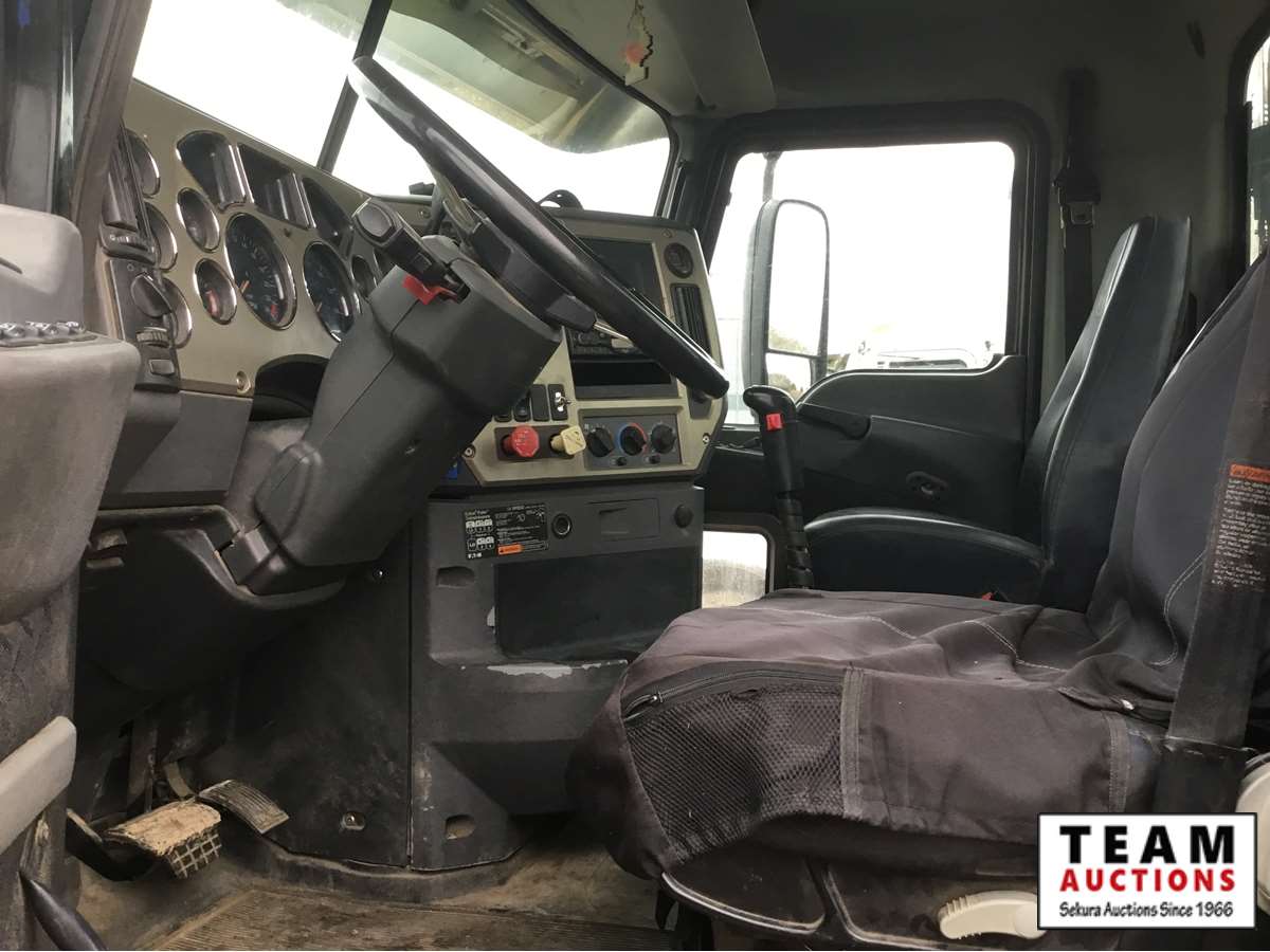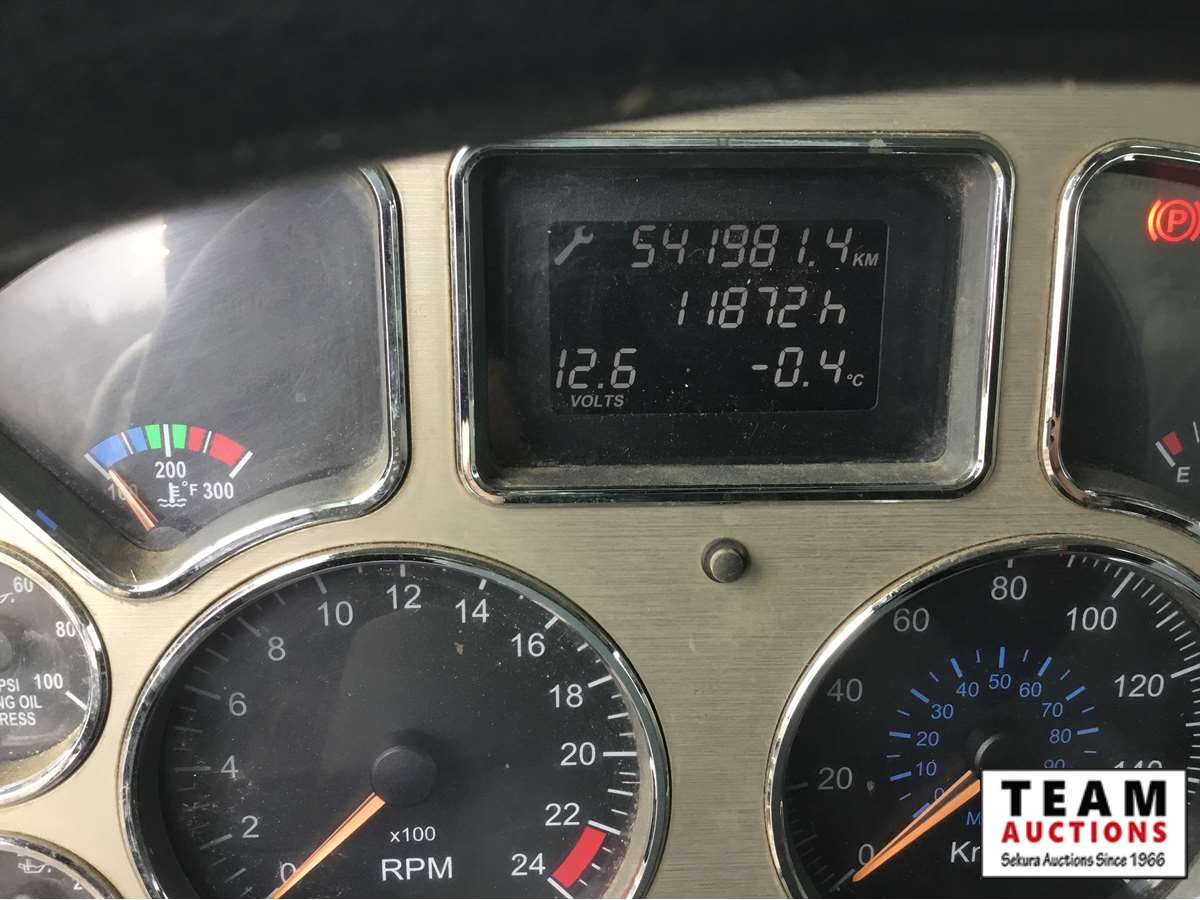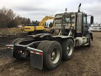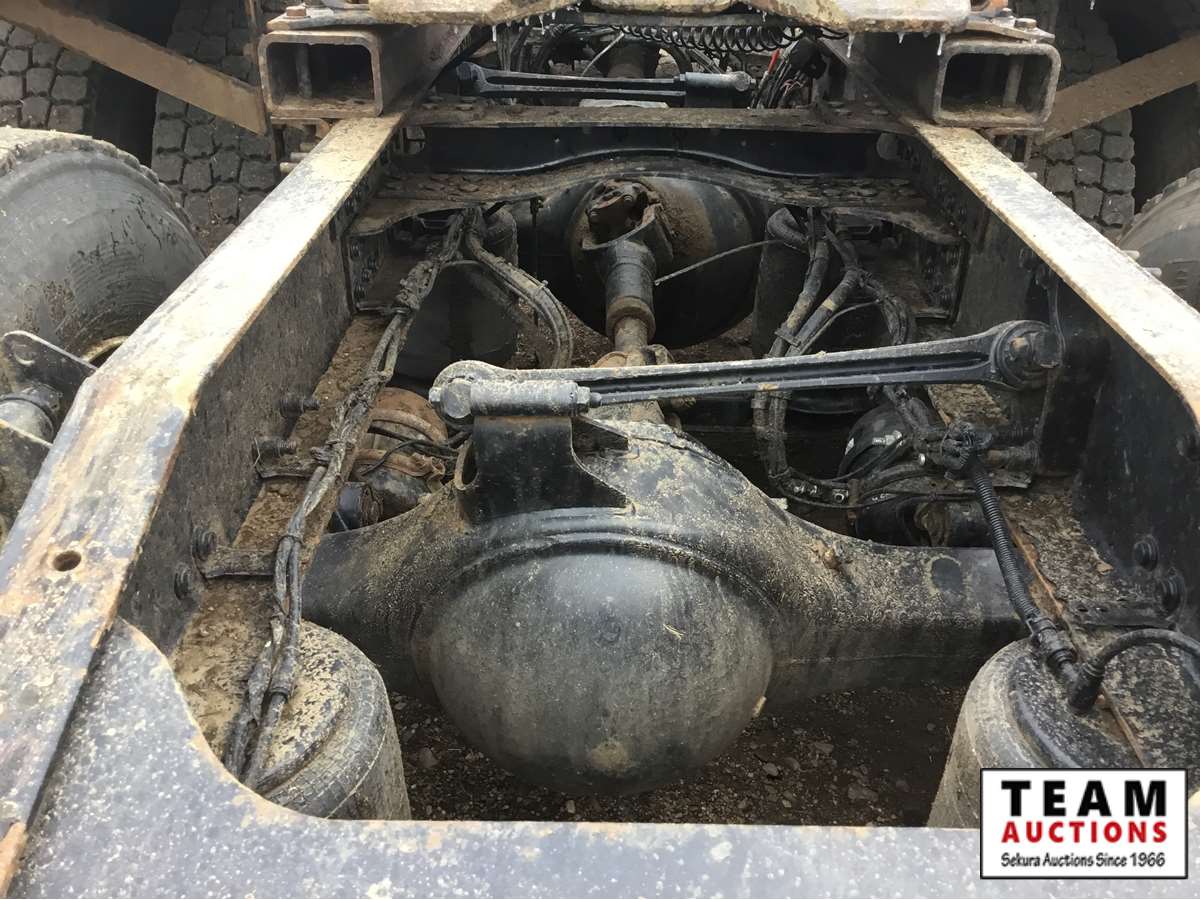 Mack 13 litre engine 485/500 hp, with eng brake, 13 speed Fuller transmission, 12,600 frt axle, 40,000 rears with locker, air ride rear suspension, air ride cab, raised air sliding 5th wheel, head rack, tool box, wet kit, 11R24.5 rubber on aluminum rims, only 541,981 kms, 11,872 engine hours, Alberta registered, no current CVIP