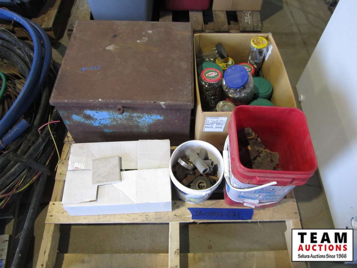 208 Pallet of Misc. Screws, Nails, Magnets, Tiles