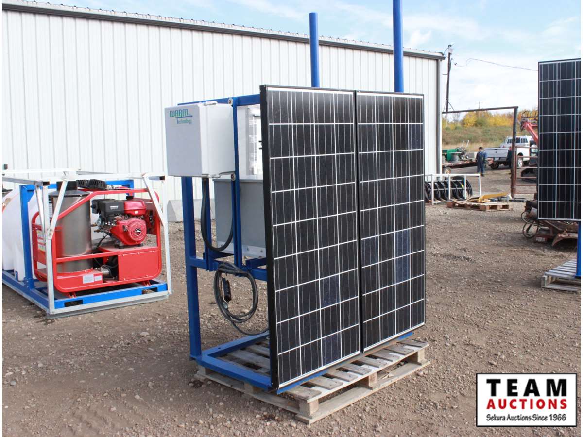(2) 135W solar panels c/w stand & insulated battery cabinet