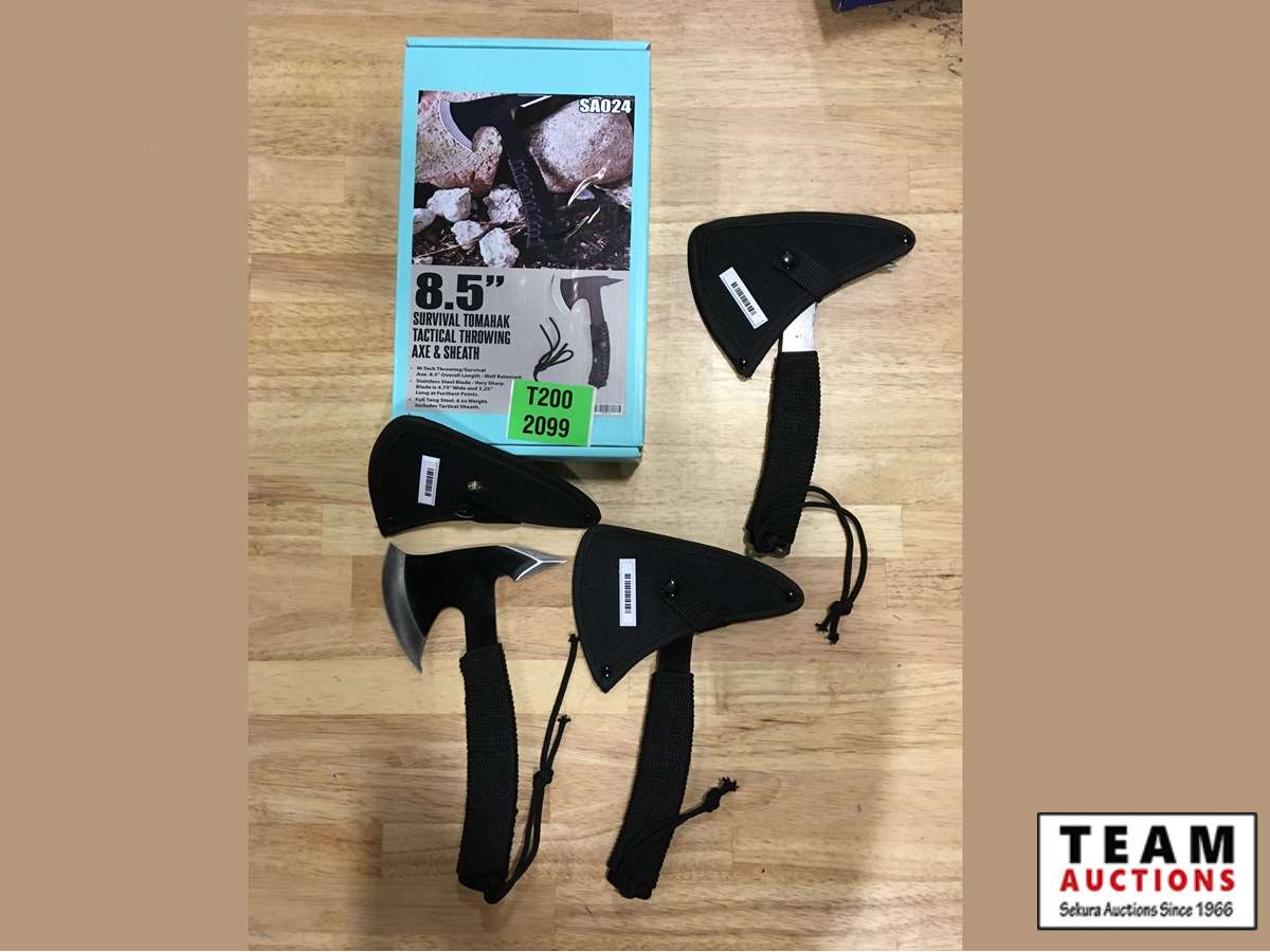 125 (3) Survival Tomahak Tactical Throwing Axe and Sheath 8.5"
