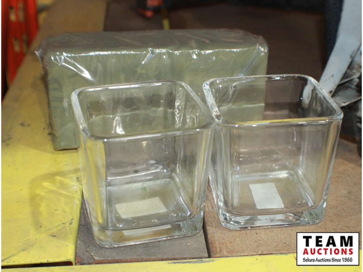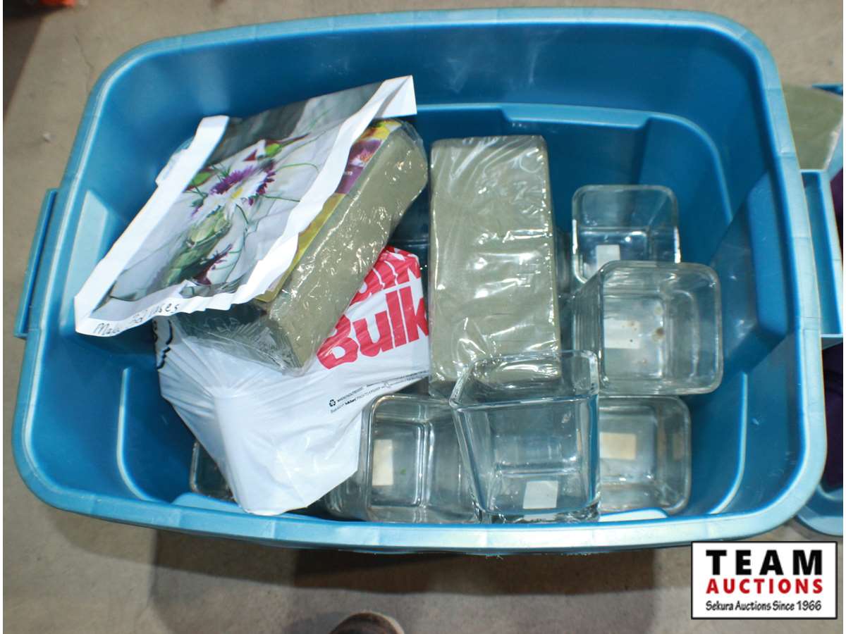 373 Blue Tote w/Glass Vases