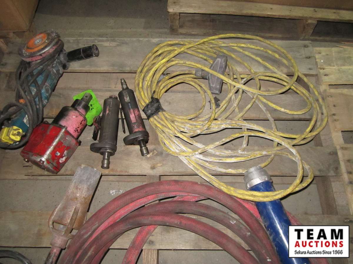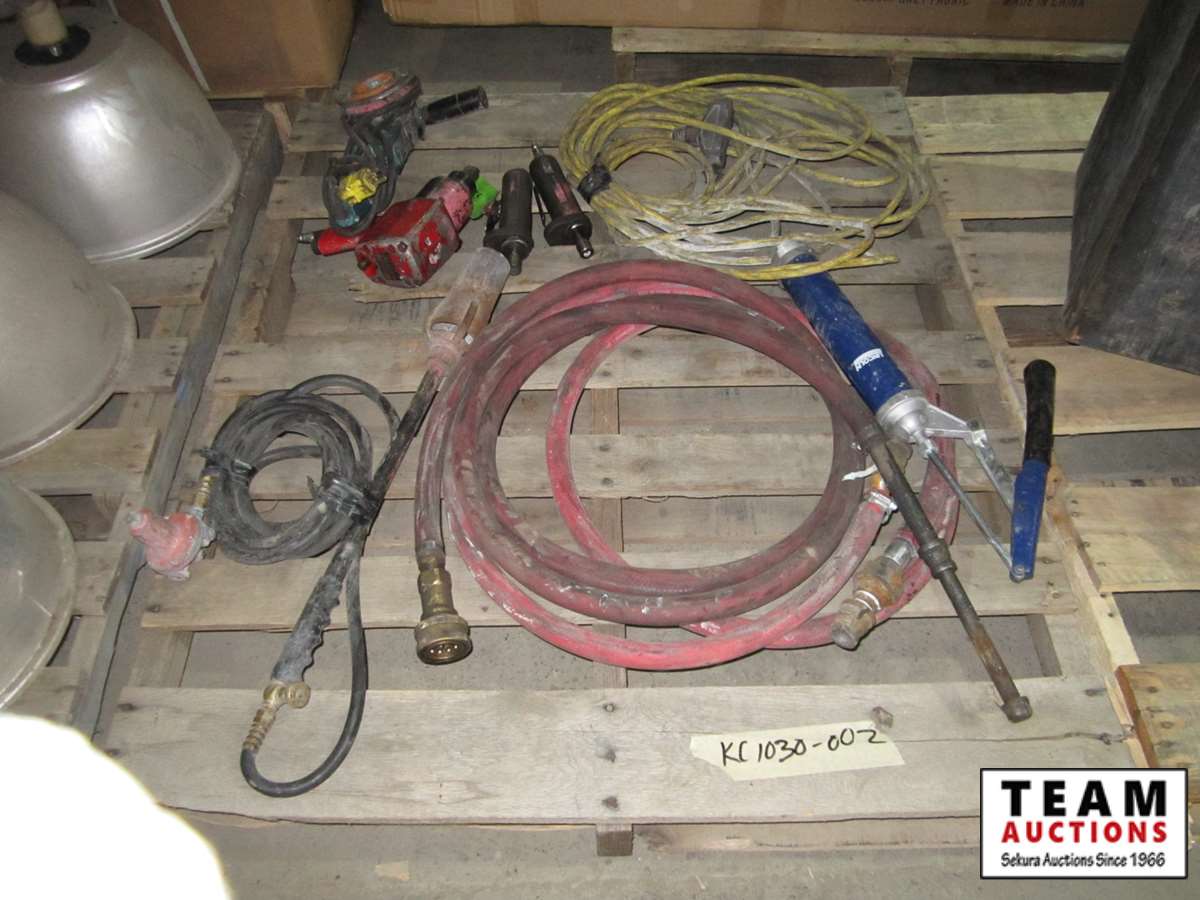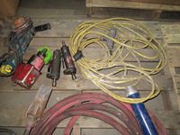 tiger torch, 3/4" air impact, (2) die grinders, right angle grinder, extension cord, barrel pump
