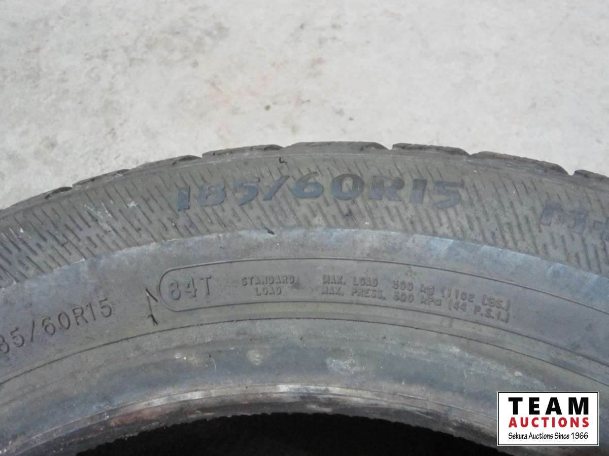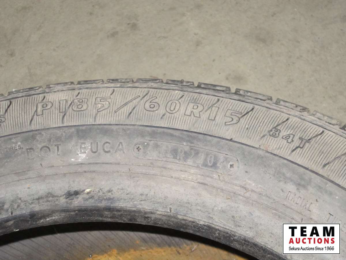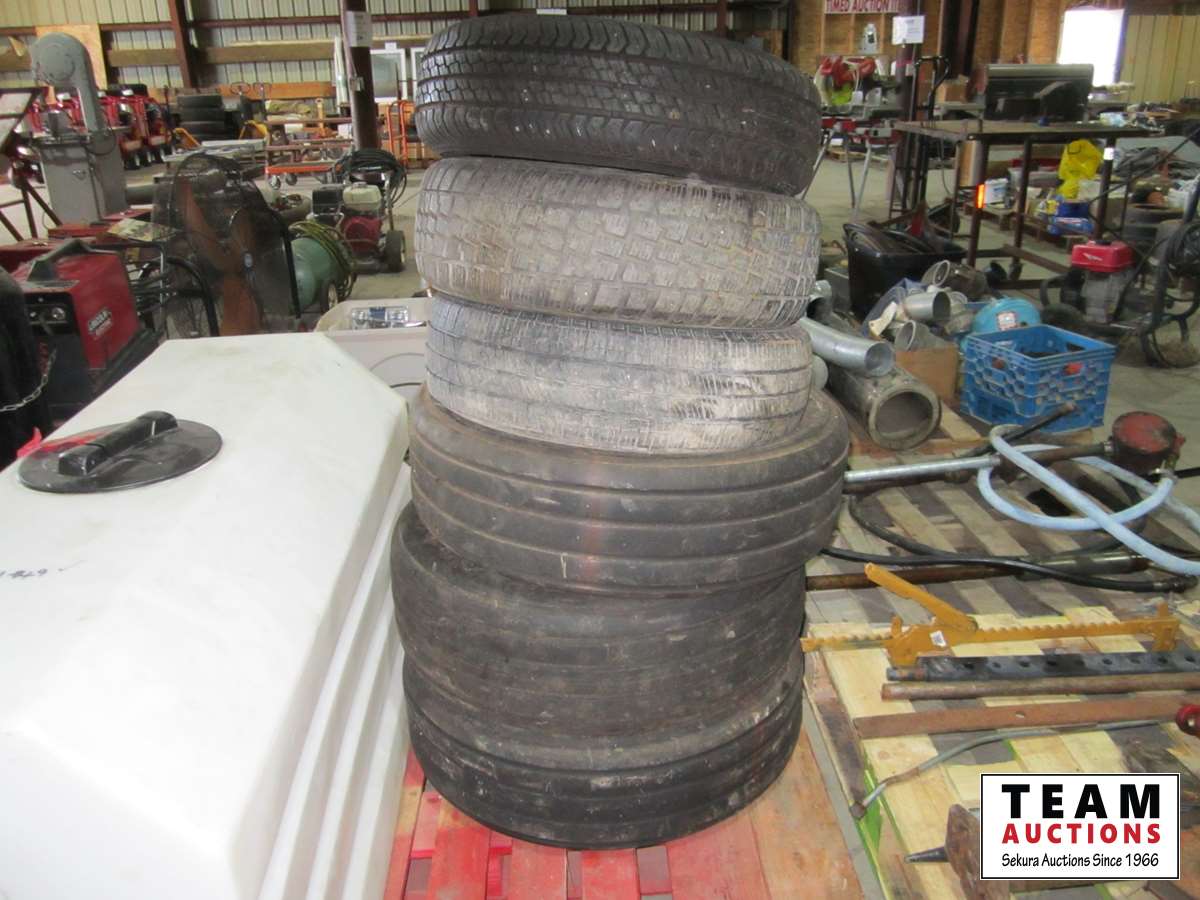 (1) tire on 4 bolt rim, 175/70R13, (1) tire, 185/60R15, (1) tire, 185/60R15, (3) tires, 11L-15SL