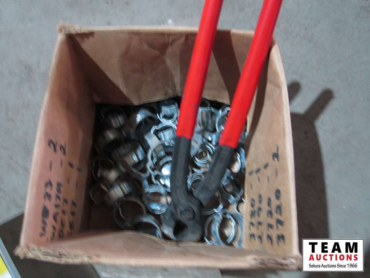 (1) container misc. springs, (1) container misc. set screw bolts, (1) box clamps & pliers