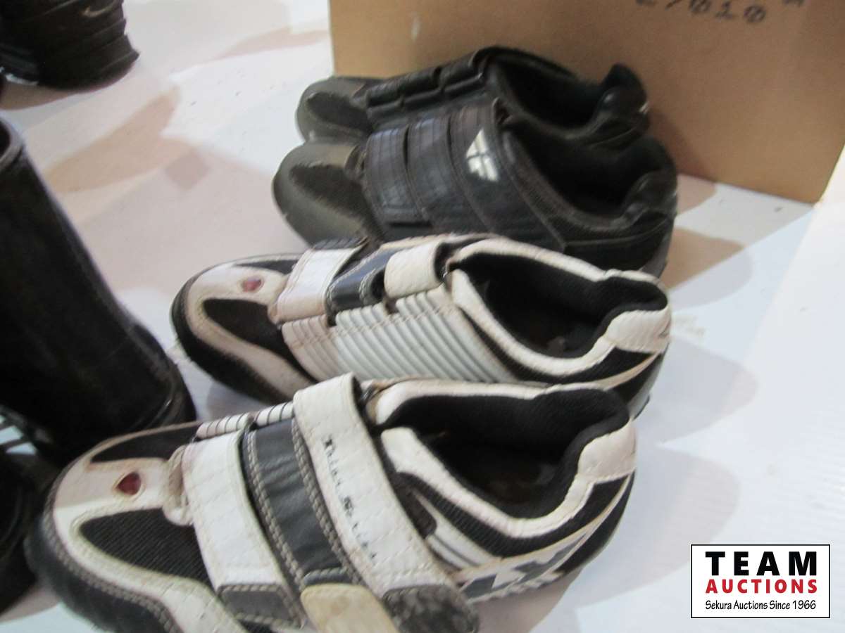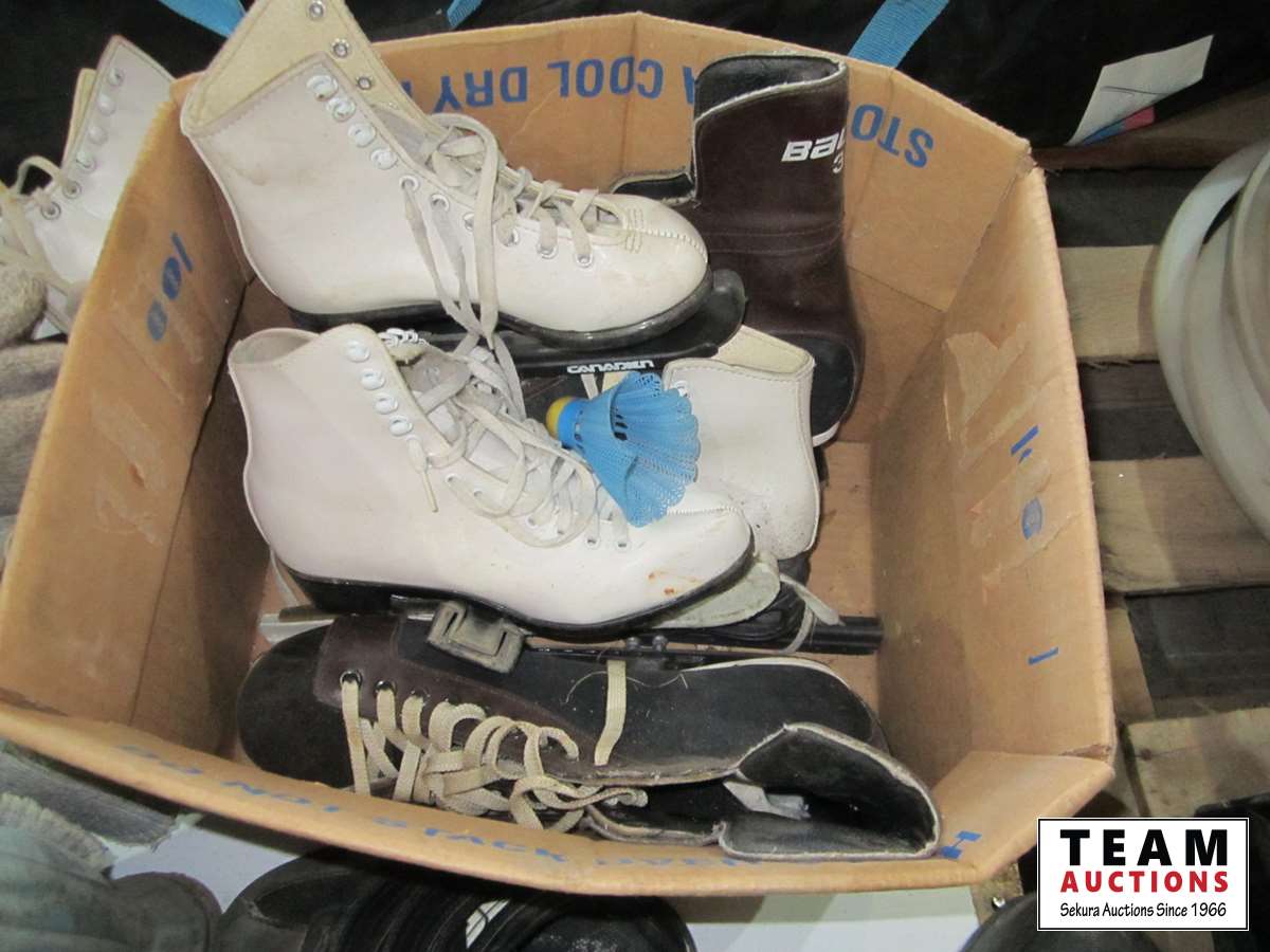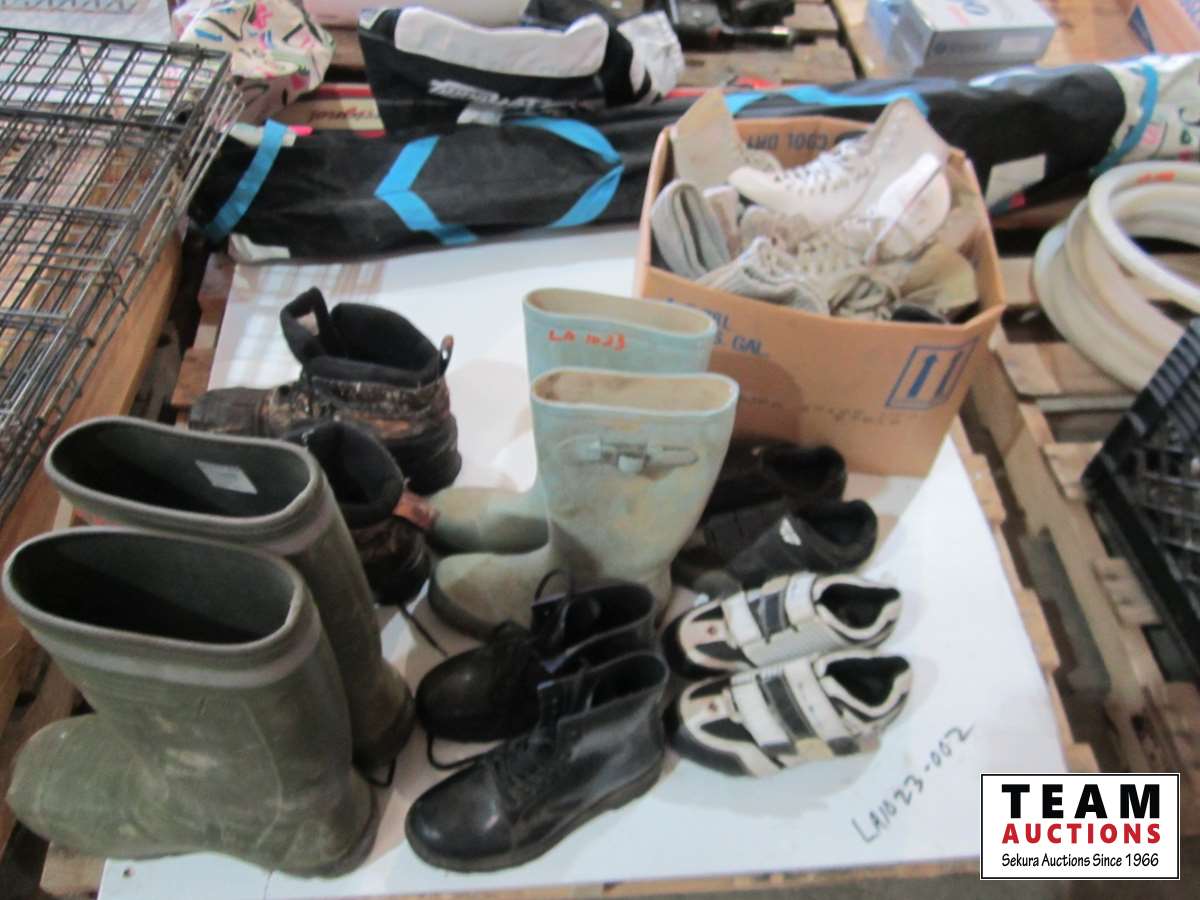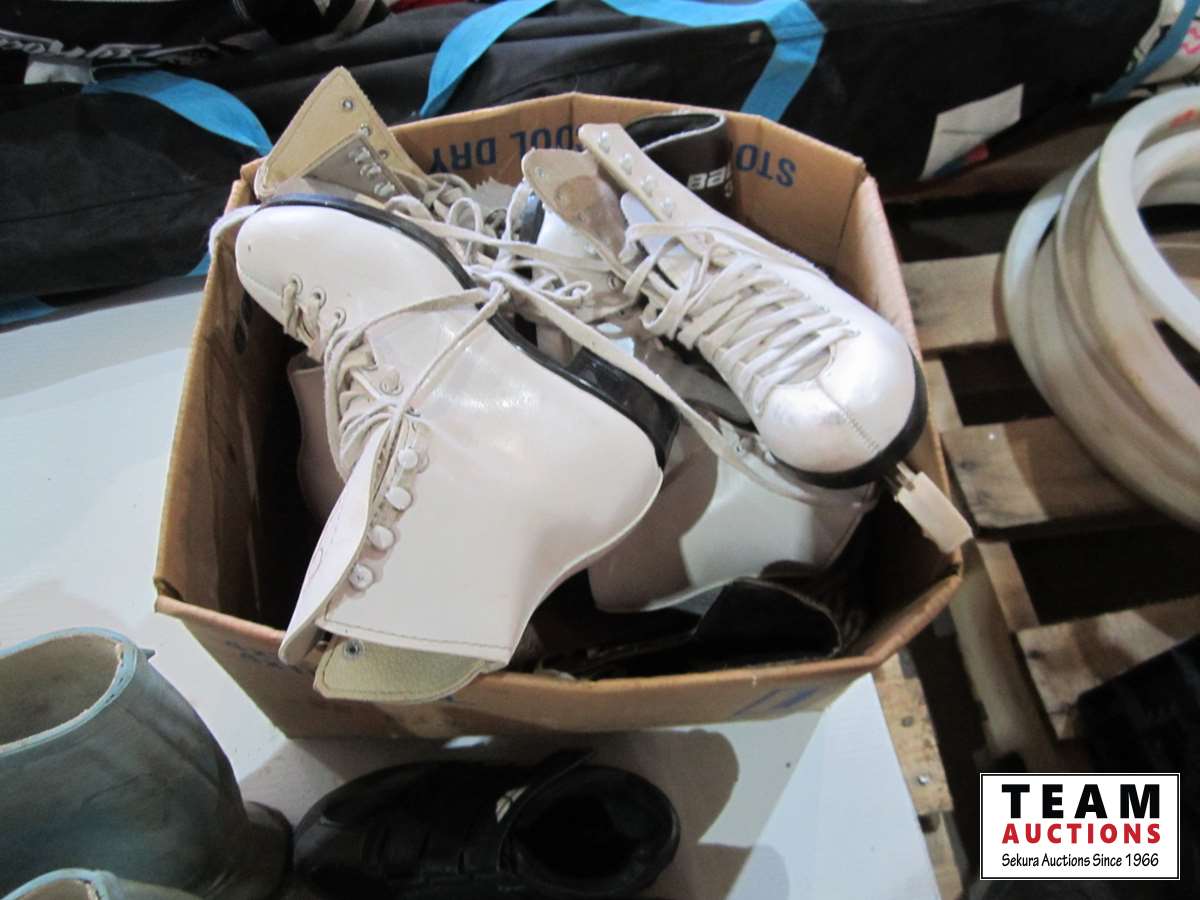 various footwear & sizes, sizes 12, 7, ice skates, race wear pant 26