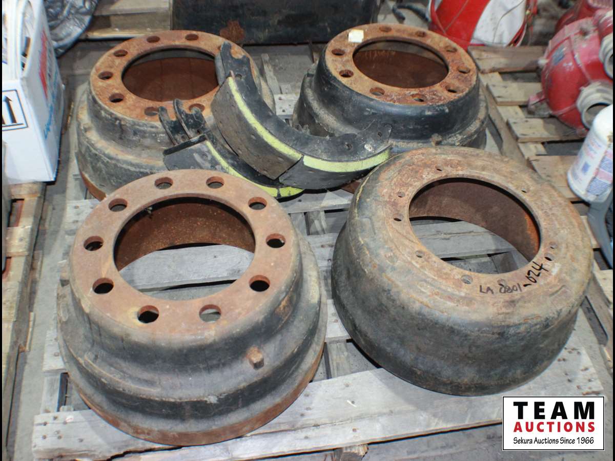 361 Pallet w/ Heavy Drums, Brake Shoes