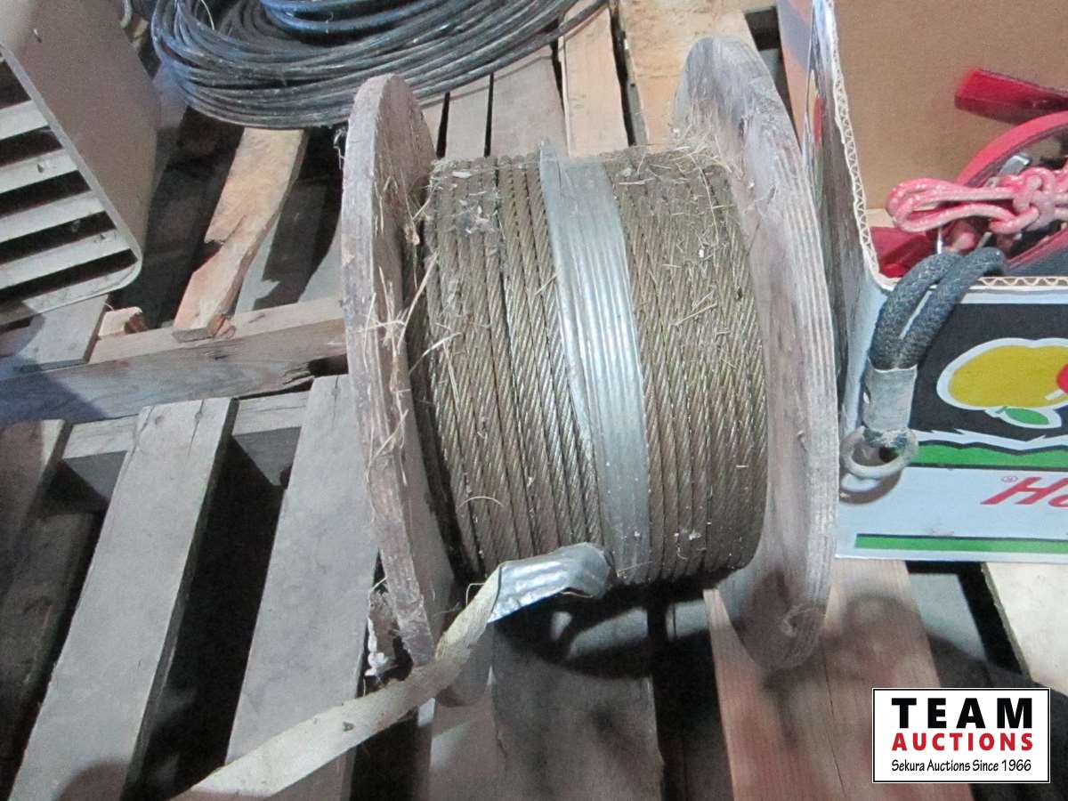 451 Pallet w/ Motor Home Winter Cover, Wire Rope, Gas Cans