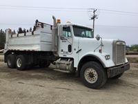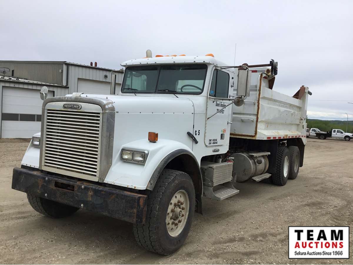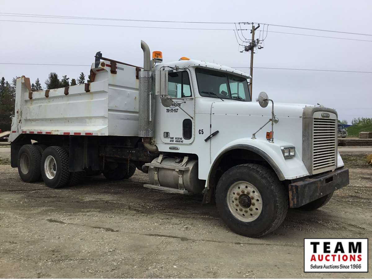 Cat C10 single turbo engine, 9 speed transmission, Chalmers rear suspension, 18,000 lb front axle with (2) steering boxes, 385/65R22.5 frt & 11R22.5 rear rubber, heavy duty steel gravel box,with high lift tailgate, rear pup hitch, Alberta registered