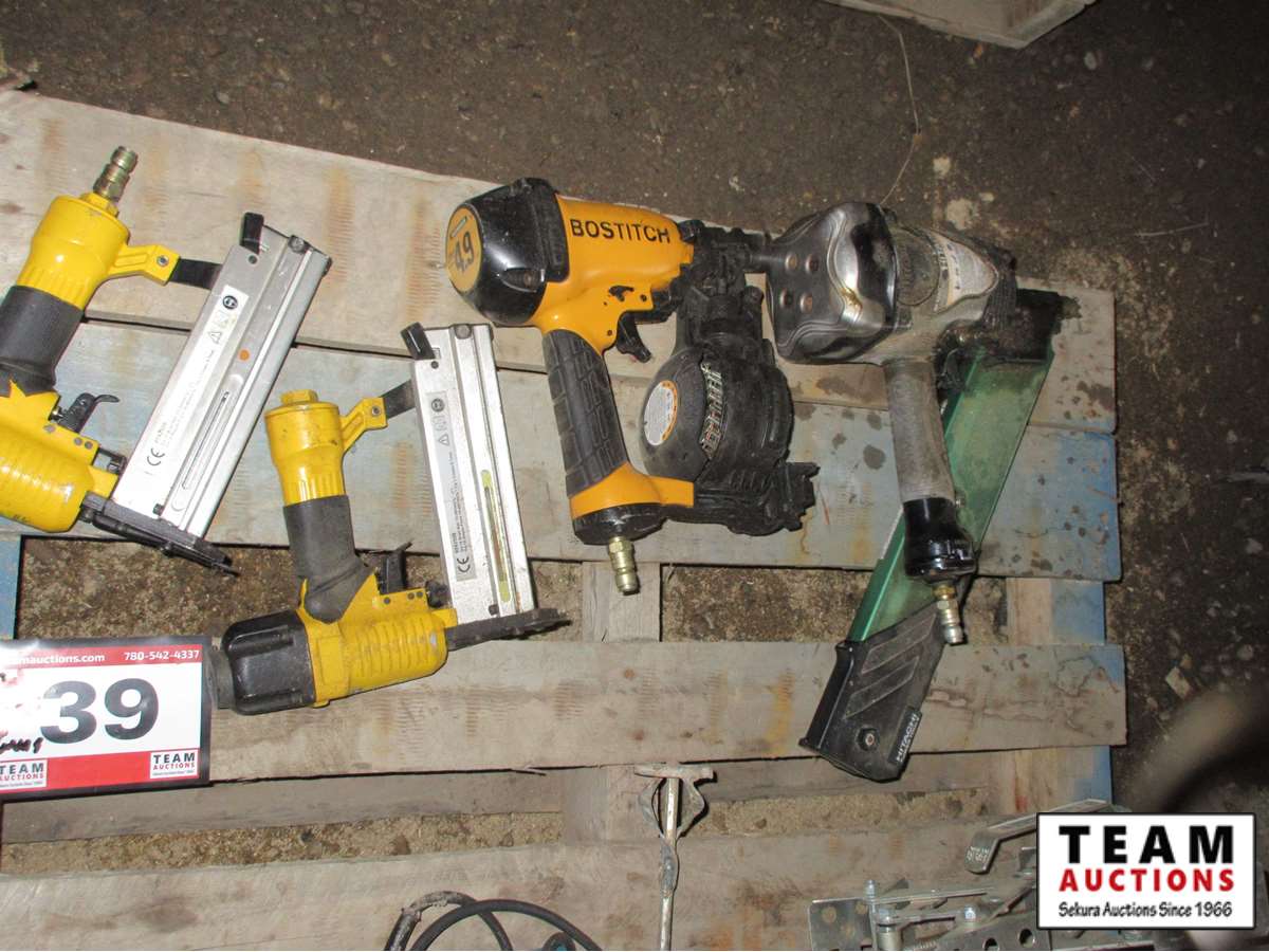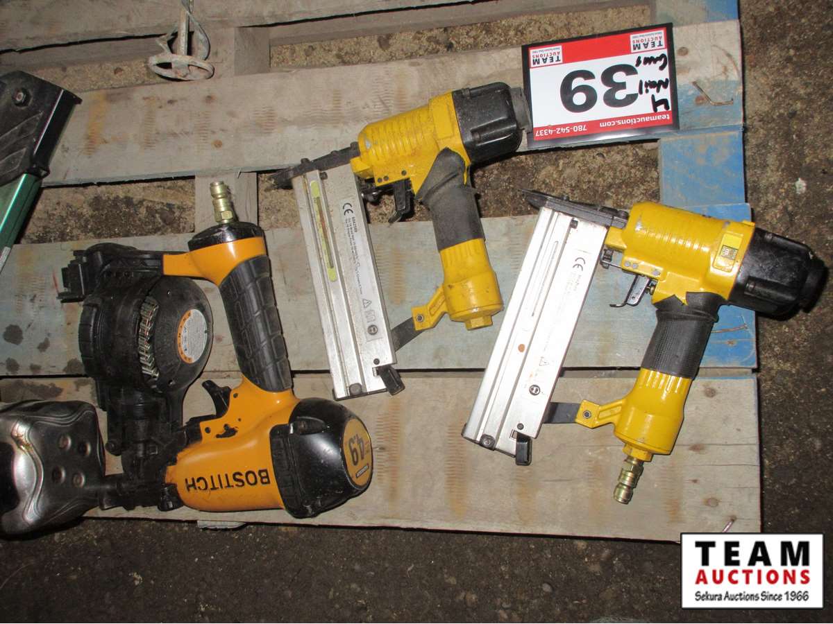 Hitachi framing nailer, Bostitch roofing nailer, (2) Power Fist brad nailers