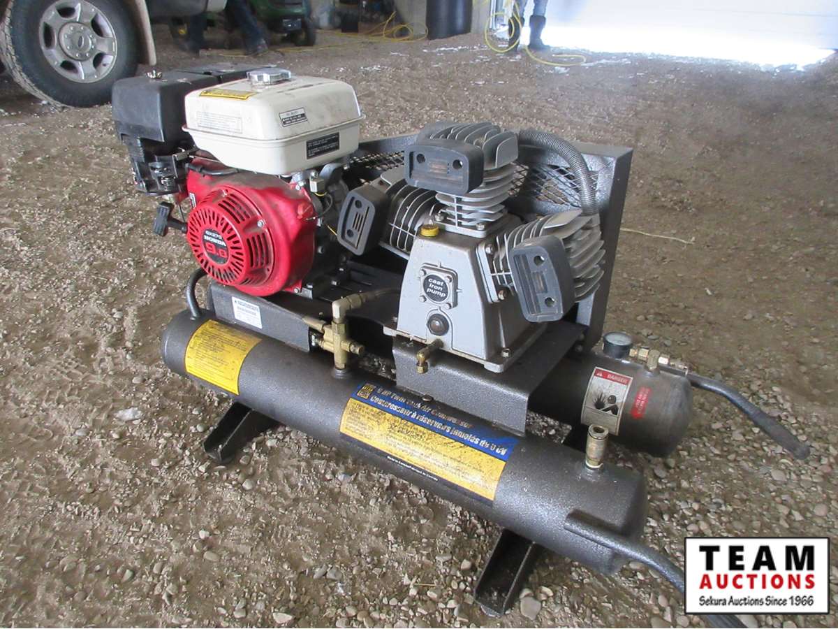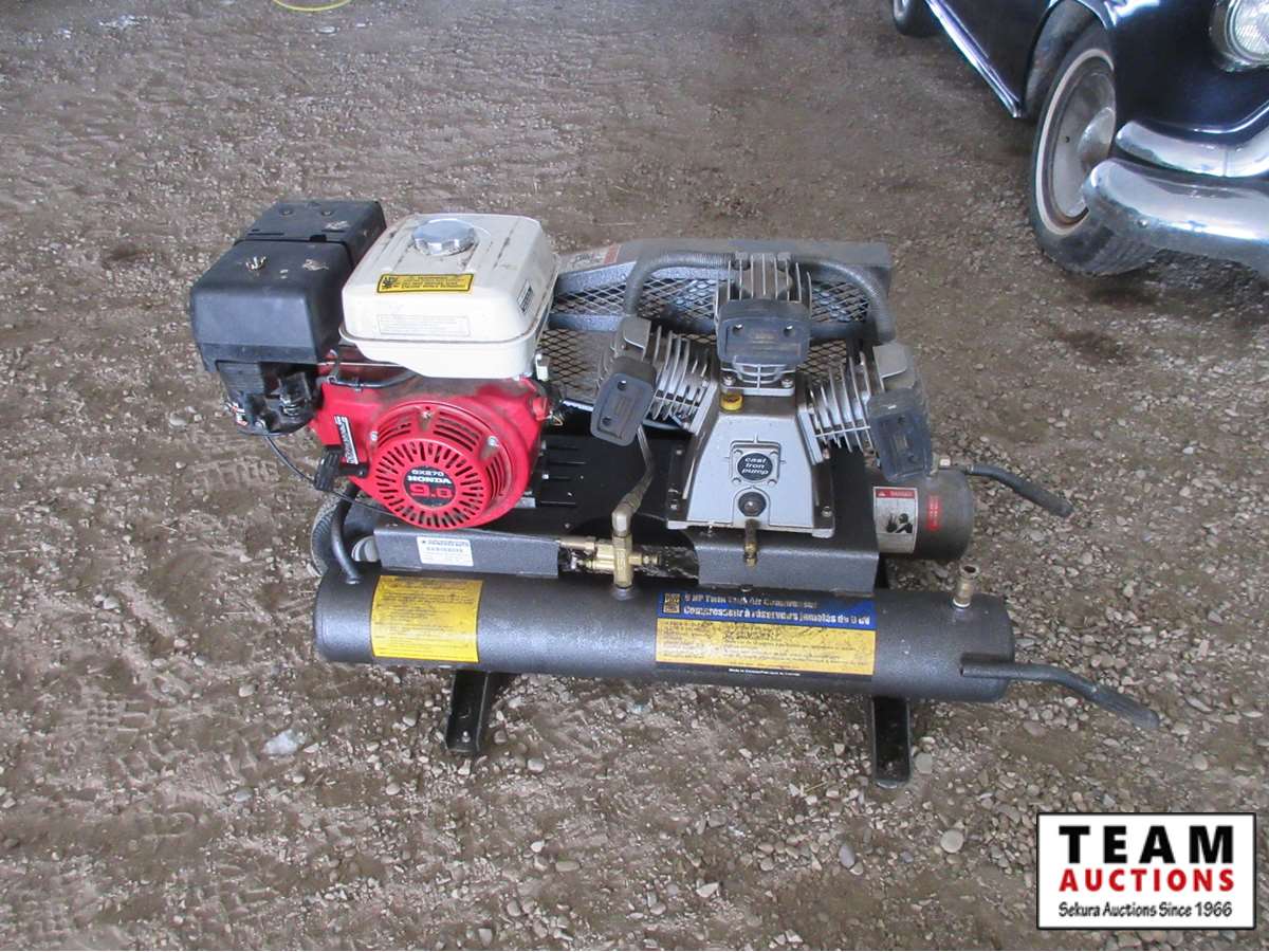 Honda 9 Hp GX270 engine, (3) cylinder air compressor head, auto idle down, twin tanks