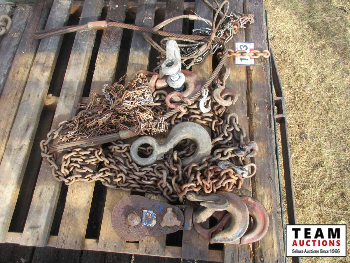 113 Pallet of Assorted Chain, Snatch Block, Cables & Clevises