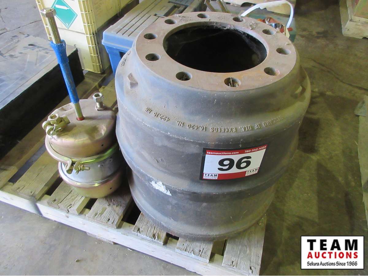 96 (2) new 16.5" Truck Brake Drums, (1) new Brake Pot