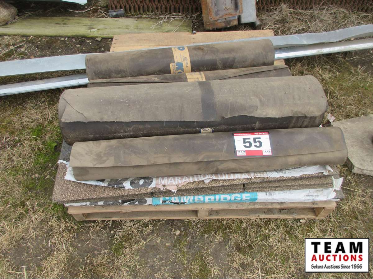 55 (3) Rolls of Tar Paper, Metal Flashing & Qty of Brown Shingles