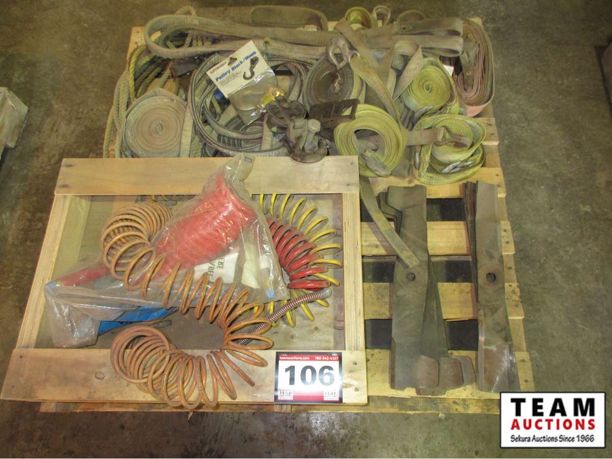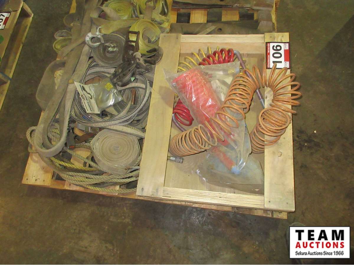 nylons slings, ratchet straps, 1/2" rope, 8500 snatch block