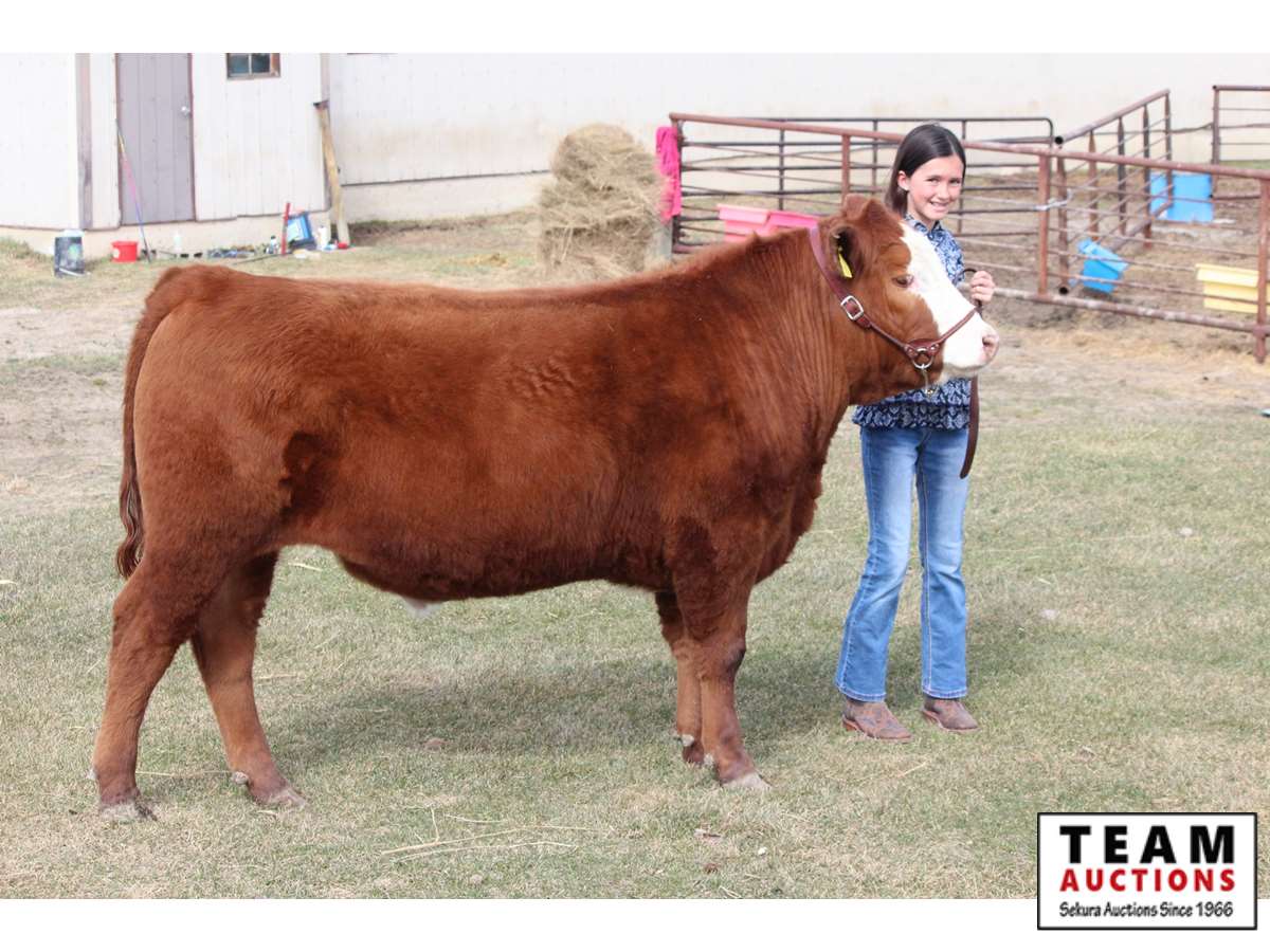 30 "Hersheys" Red Angus X Steer "Madison Bouius" 955 lbs