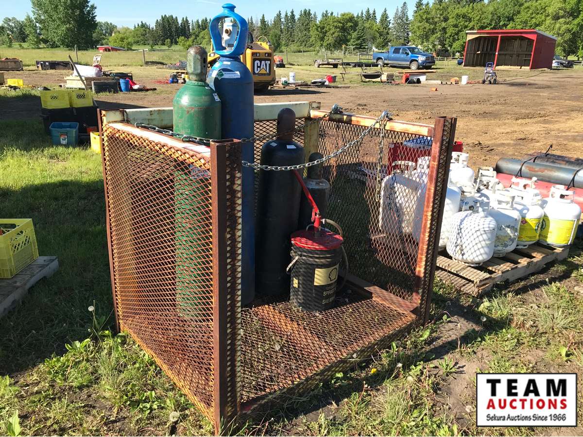 (4) compressed gas bottles,(1) oil pail pump