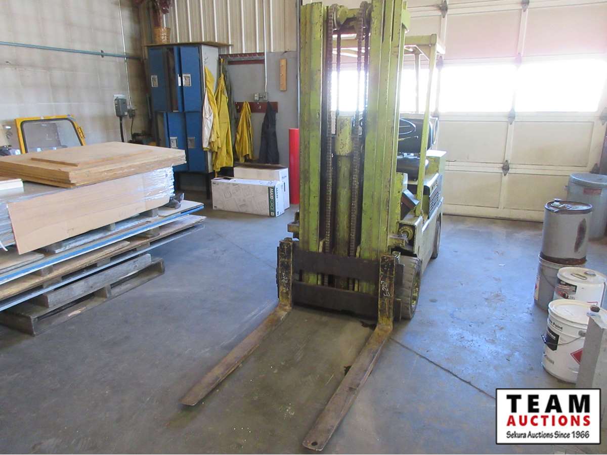 4 cylinder engine on propane, 4' forks, single stage mast, solid rubber, canopy