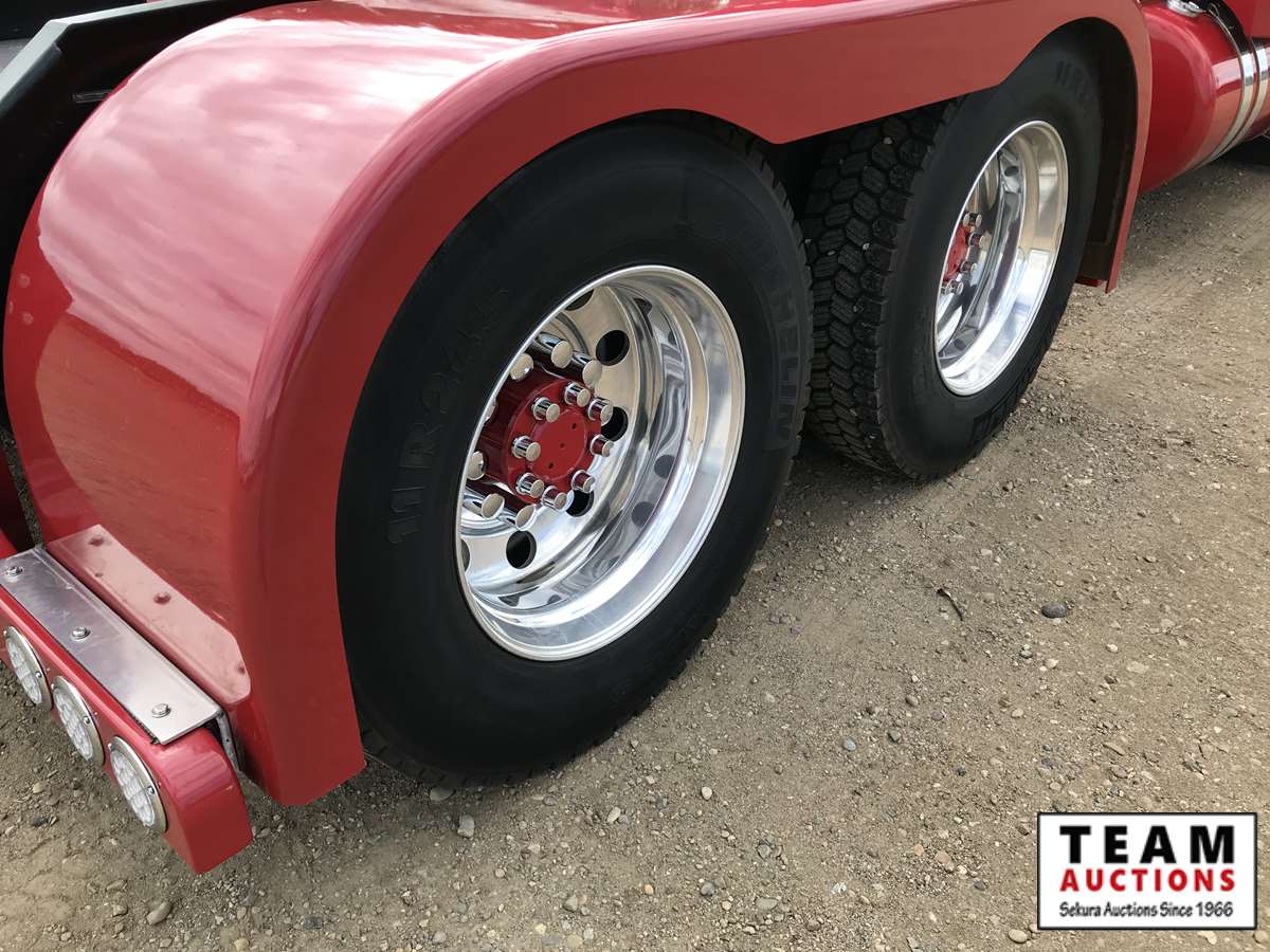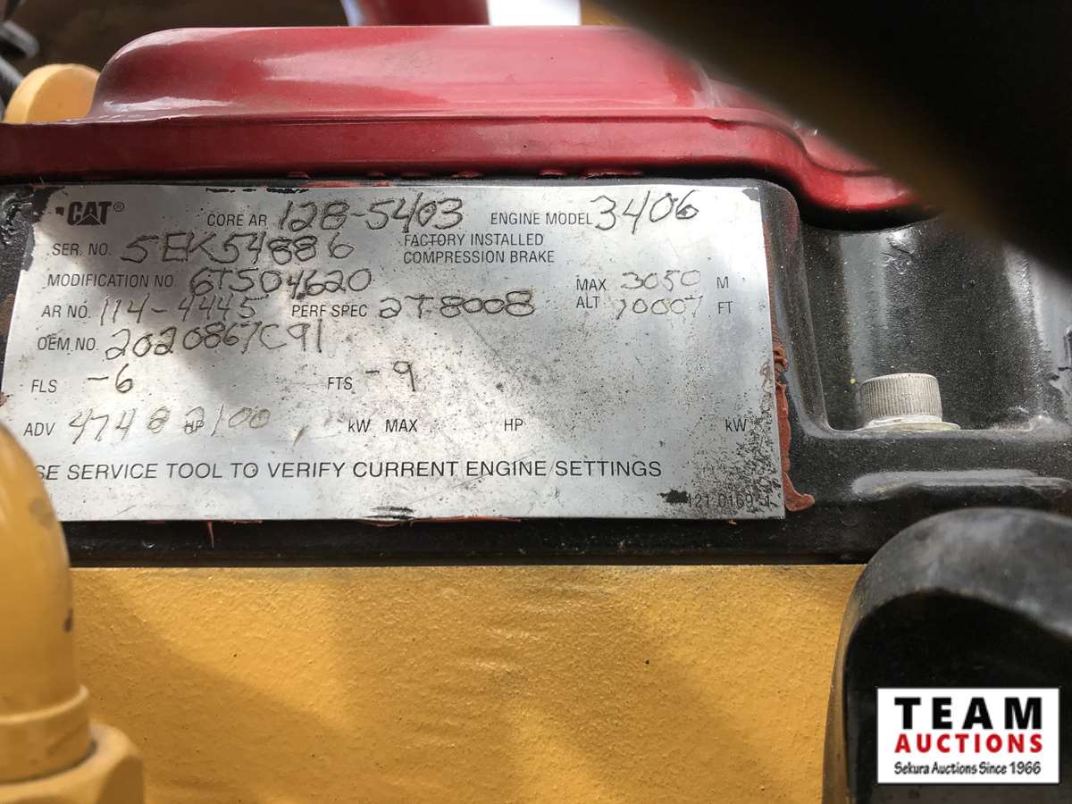 Caterpillar 3406EK, engine brake, Eaton Fuller 18 speed, 12000 lb front, 38000 lb rears, 62 in. sleeper, A/R suspension alum wheels, 265 in. WB, 11R24.5, 285,010 kms showing