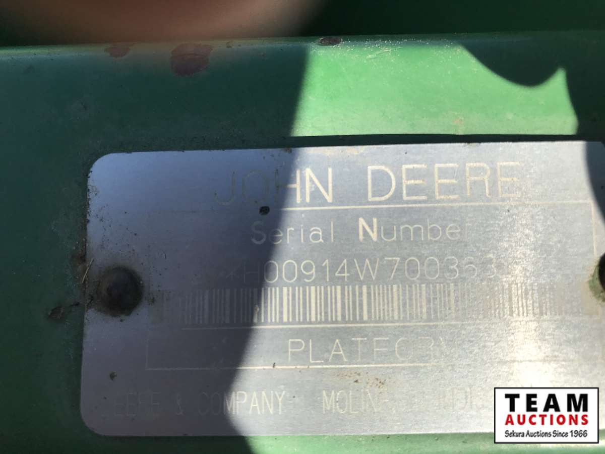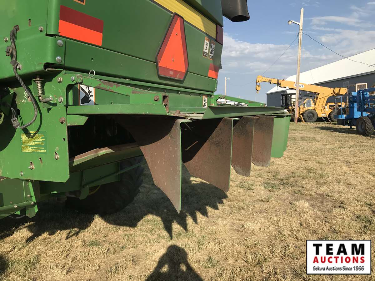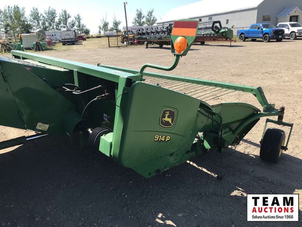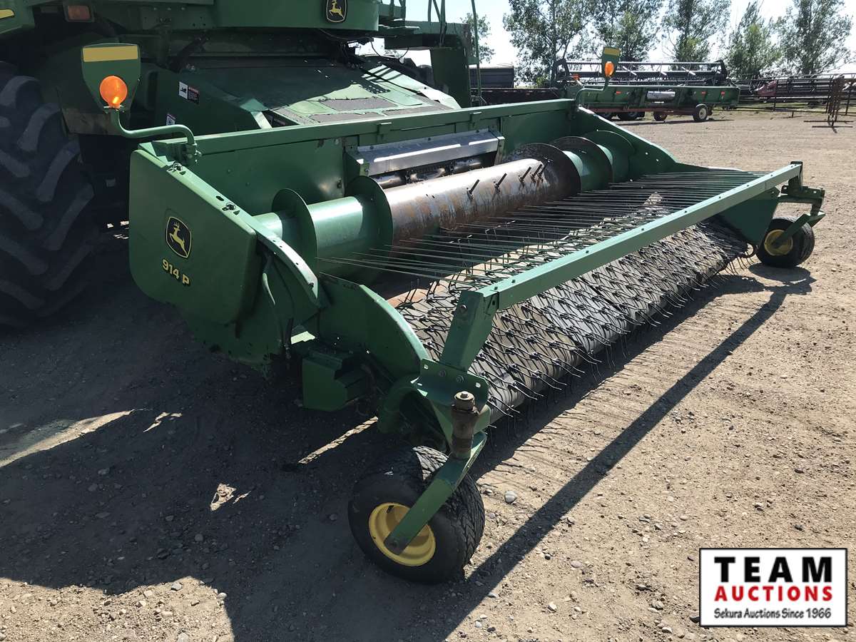 2003 914P pickup header s/n H00914W700363, reverser, VSR, auto HHC, F&A, 19 ft auger, chaff spreader, fine cut chopper, 800/65R32 F, 16.9R26 R, 5089 sep hrs showing, 6874 hrs