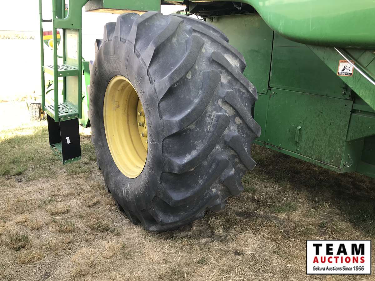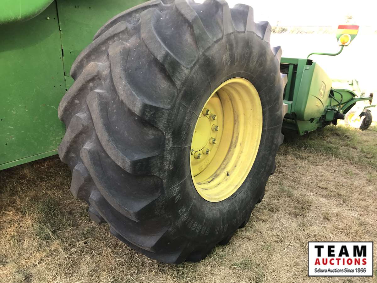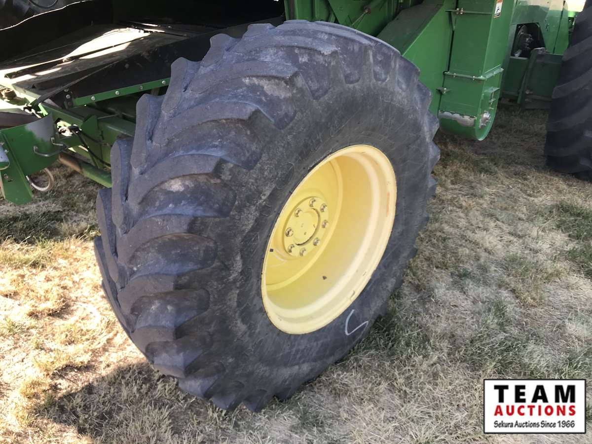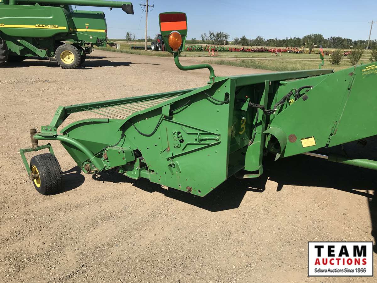 2003 914P pickup header s/n H00914W700363, reverser, VSR, auto HHC, F&A, 19 ft auger, chaff spreader, fine cut chopper, 800/65R32 F, 16.9R26 R, 5089 sep hrs showing, 6874 hrs