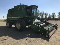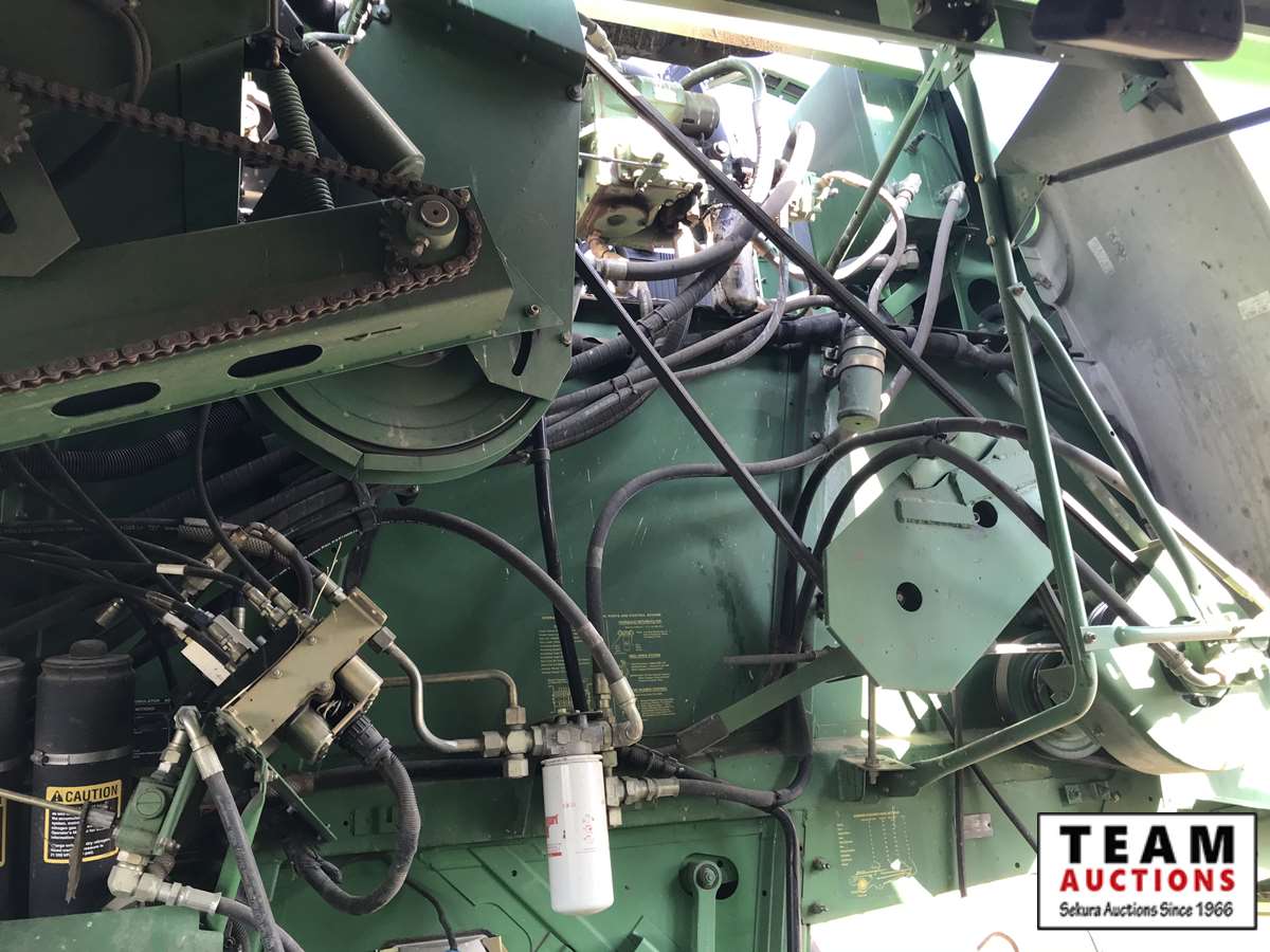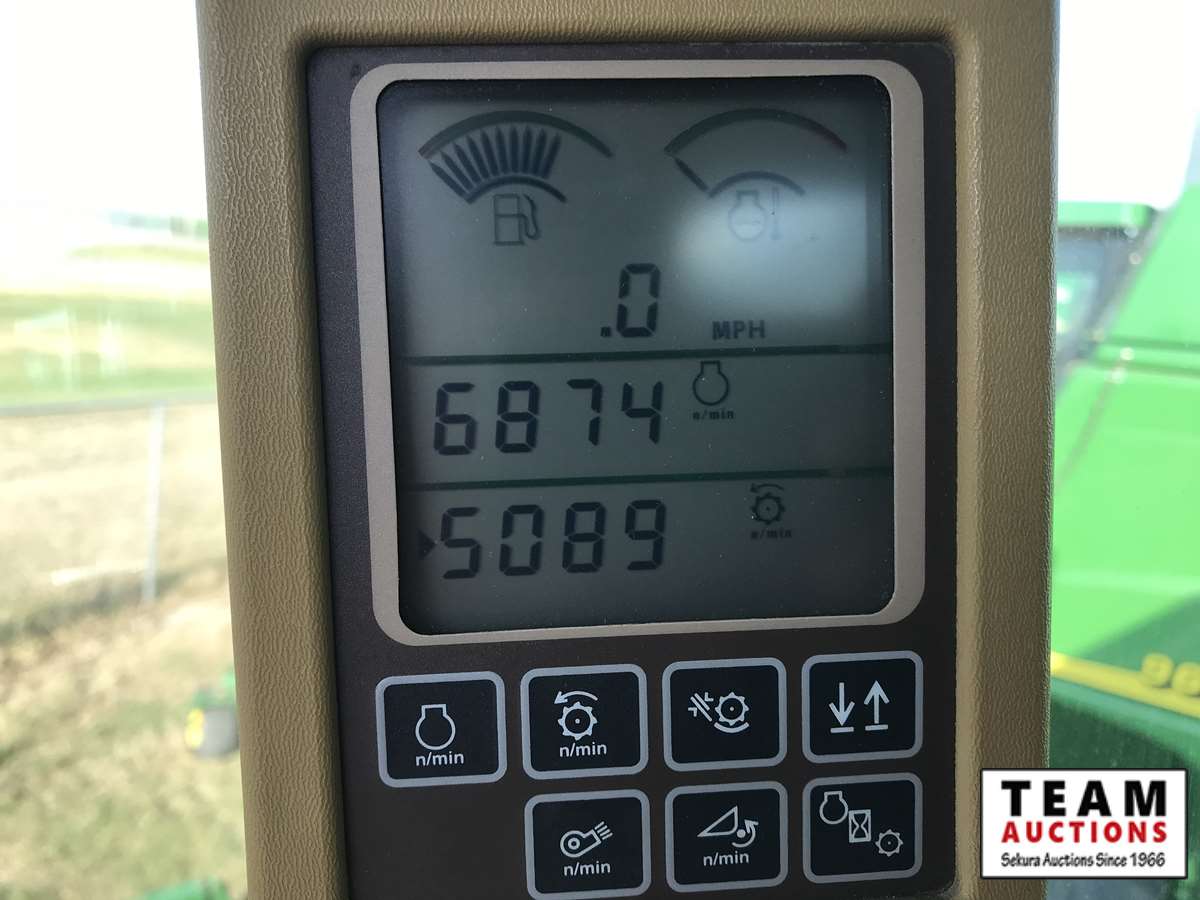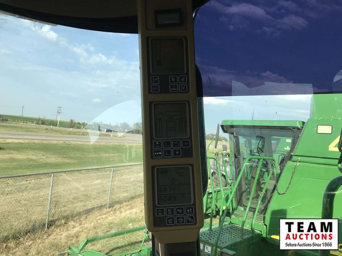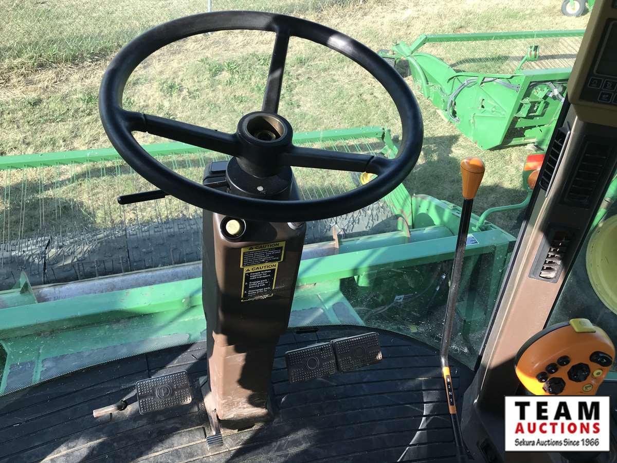 2003 914P pickup header s/n H00914W700363, reverser, VSR, auto HHC, F&A, 19 ft auger, chaff spreader, fine cut chopper, 800/65R32 F, 16.9R26 R, 5089 sep hrs showing, 6874 hrs