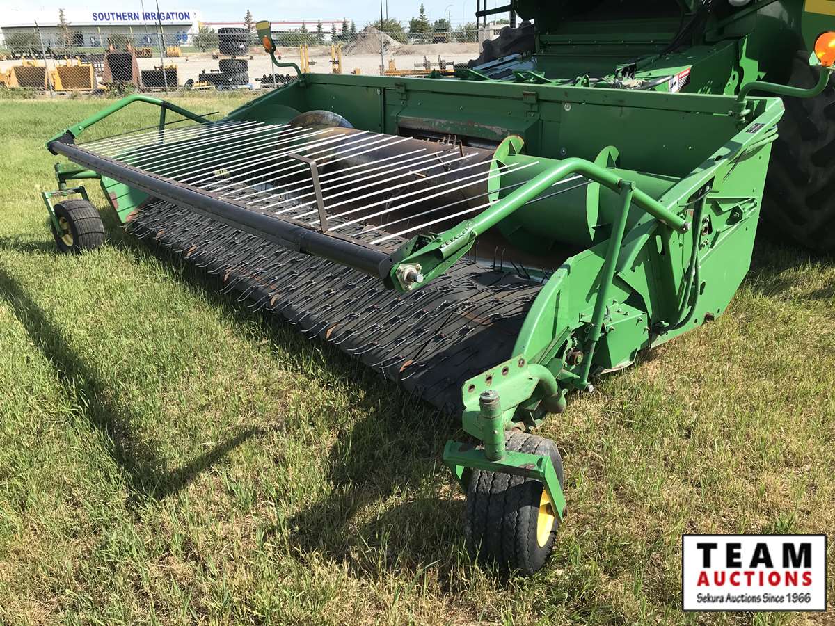 JD 914 P/U header, fine cut chopper, chaff spreader, yield & moisture, VSR, auto header height control, fore and aft, grain tank extensions, 3115 engine hrs, 2242 machine hrs