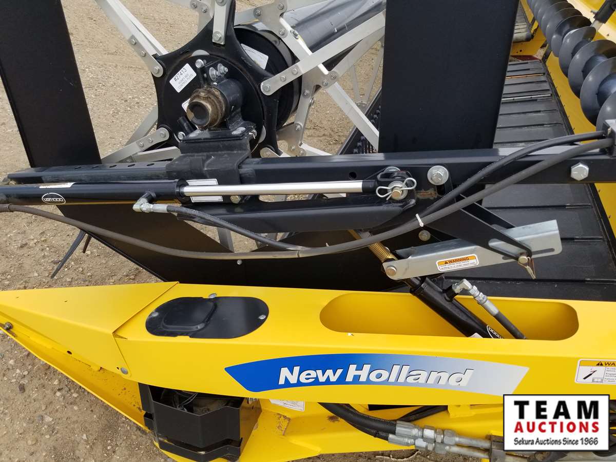 HB36 header, s/n 36WS115543, cross auger, p/u reel, hydraulic fore/aft, dbl knife drive, tapered poly swath roller, 18.4R26 F, 14L-16.1SL R, 351 hrs