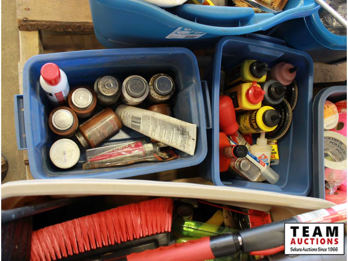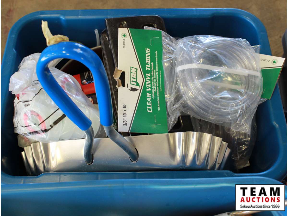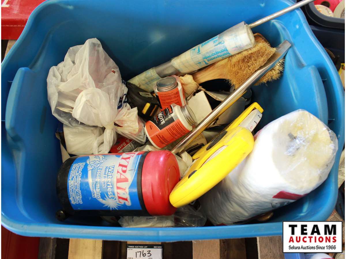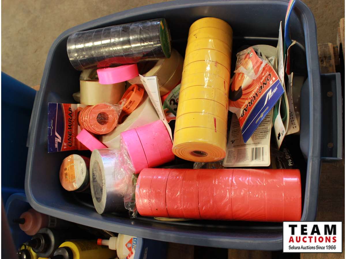 Scott towels, 200' tape measure, anti-seize compound, butane fuel, containers of lead seal compound, topaz snow brush, caulking gun, various marking tape, aluminum tape, electrical tape, packing tape, misc.