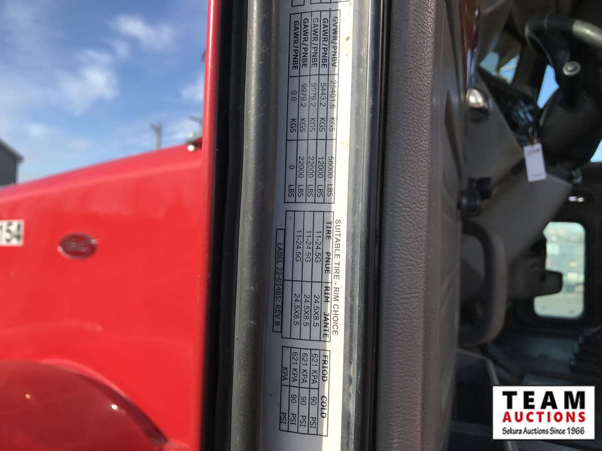 Caterpillar C15, 550 hp, 18 spd, eng brake, double diff lock, 4:10 ratio,12,000 lb F, 44,000 lb R, A/R susp, 11R24.5, 37,486 hrs showing, 1,655,901 kms showing
